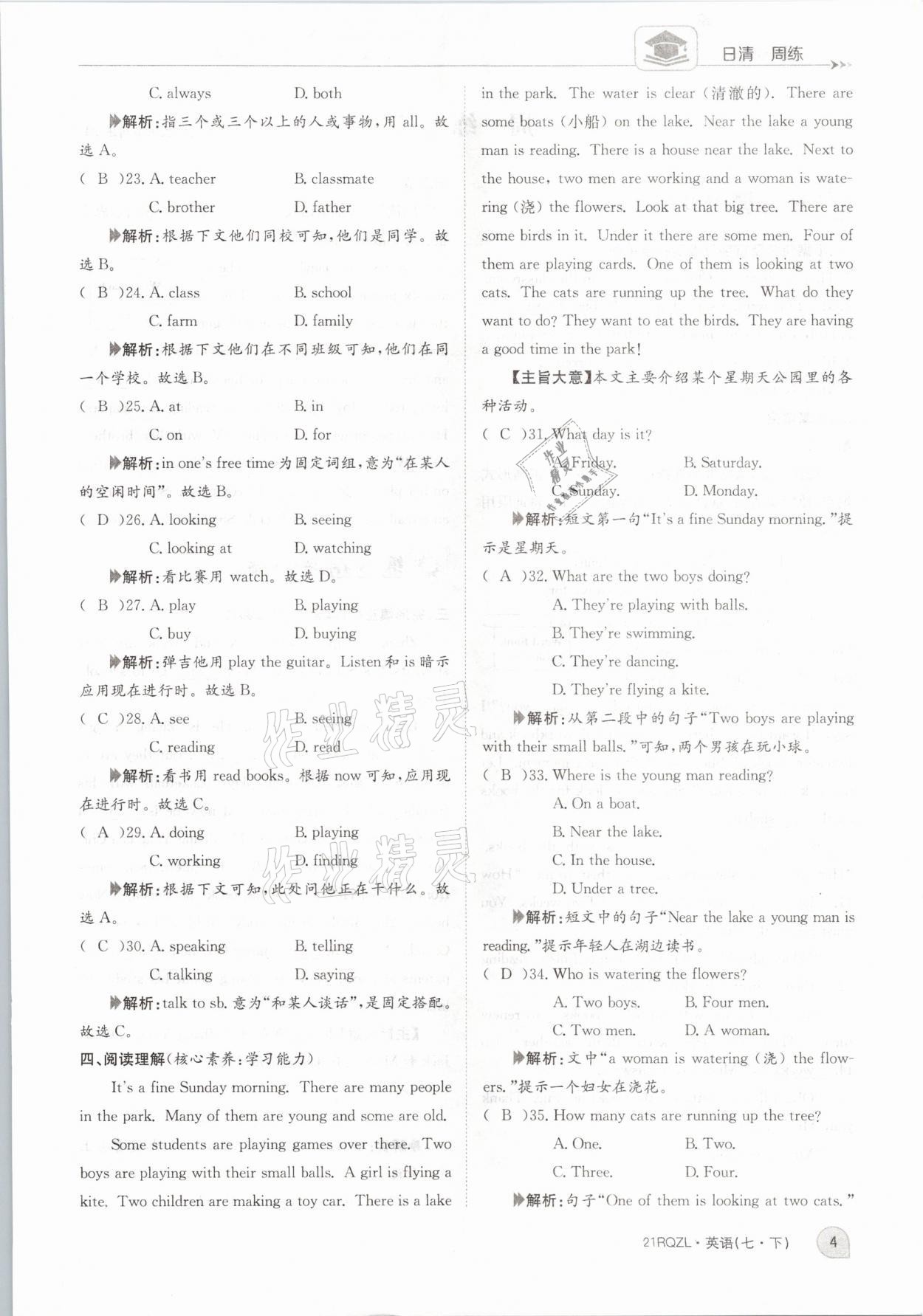 注:目前有些书本章节名称可能整理的还不是很完善,但都是按照顺序排列的,请同学们按照顺序仔细查找。练习册 2021年日清周练七年级英语下册外研版 答案主要是用来给同学们做完题方便对答案用的,请勿直接抄袭。