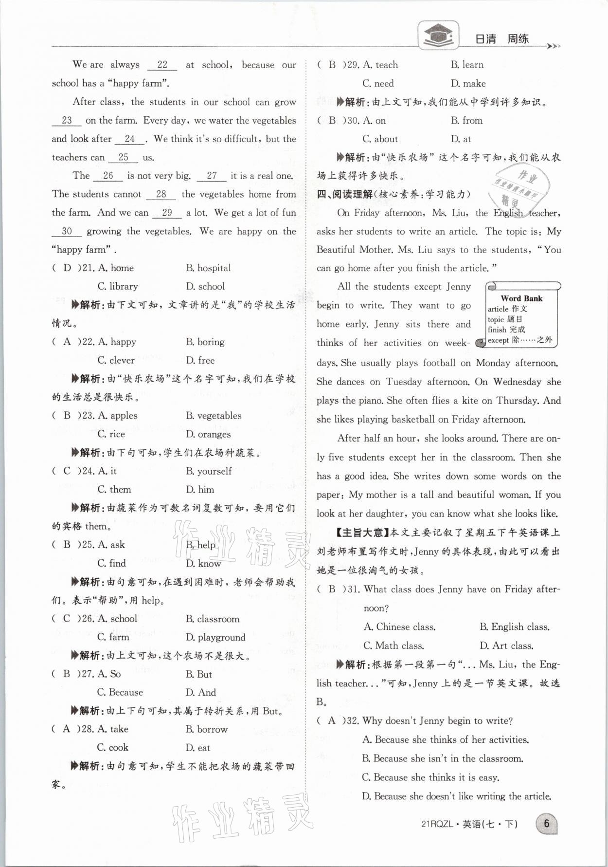 注:目前有些书本章节名称可能整理的还不是很完善,但都是按照顺序排列的,请同学们按照顺序仔细查找。练习册 2021年日清周练七年级英语下册外研版 答案主要是用来给同学们做完题方便对答案用的,请勿直接抄袭。