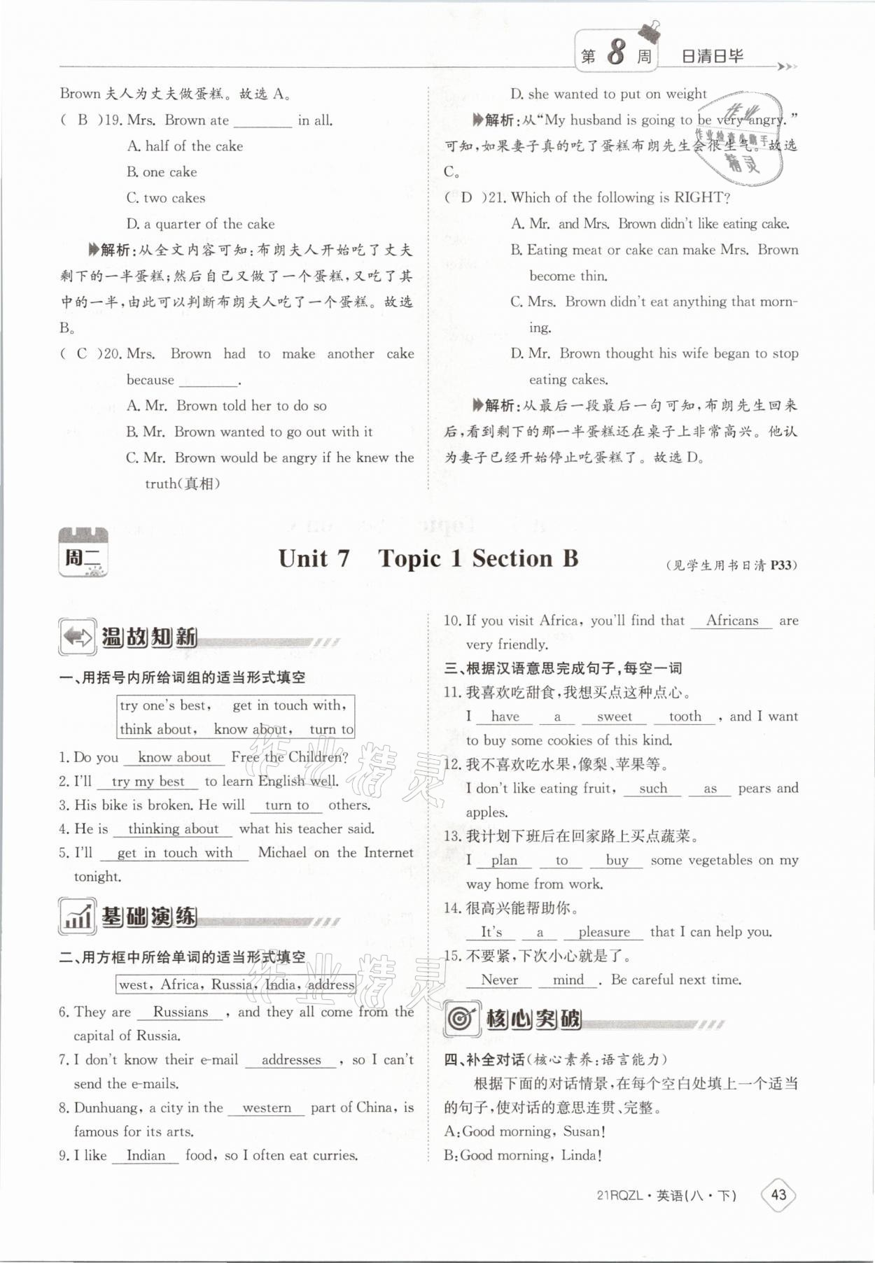 注:目前有些书本章节名称可能整理的还不是很完善,但都是按照顺序排列的,请同学们按照顺序仔细查找。练习册 2021年日清周练八年级英语下册外研版 答案主要是用来给同学们做完题方便对答案用的,请勿直接抄袭。