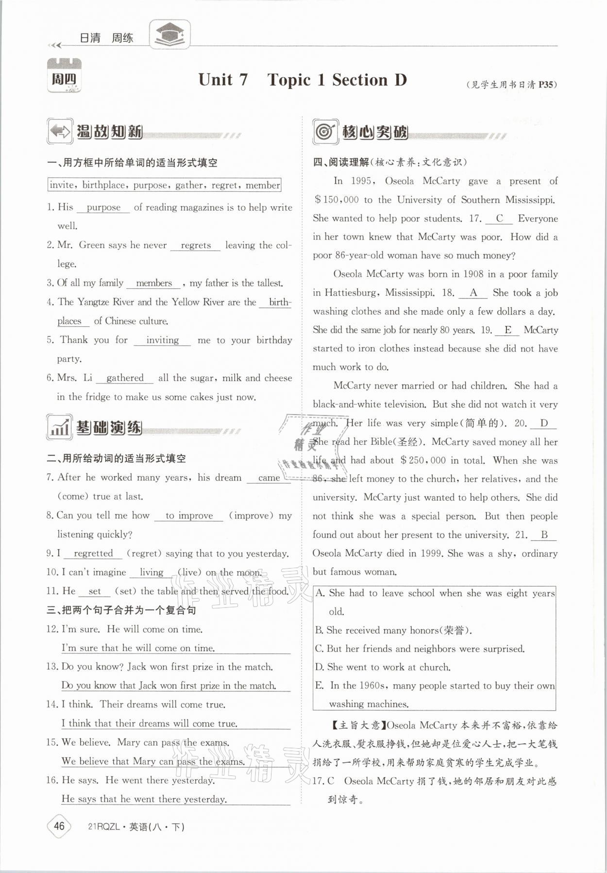 注:目前有些书本章节名称可能整理的还不是很完善,但都是按照顺序排列的,请同学们按照顺序仔细查找。练习册 2021年日清周练八年级英语下册外研版 答案主要是用来给同学们做完题方便对答案用的,请勿直接抄袭。