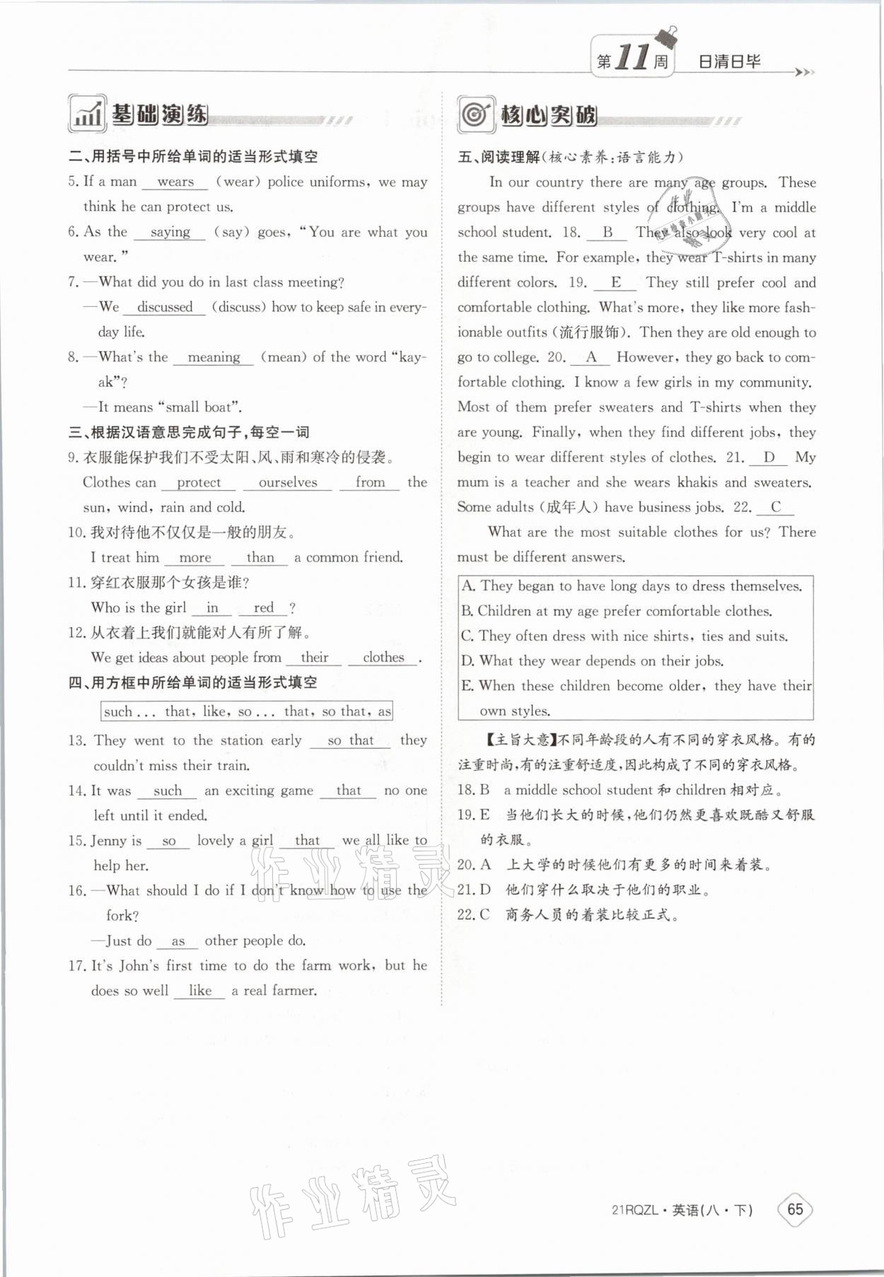 注:目前有些书本章节名称可能整理的还不是很完善,但都是按照顺序排列的,请同学们按照顺序仔细查找。练习册 2021年日清周练八年级英语下册外研版 答案主要是用来给同学们做完题方便对答案用的,请勿直接抄袭。