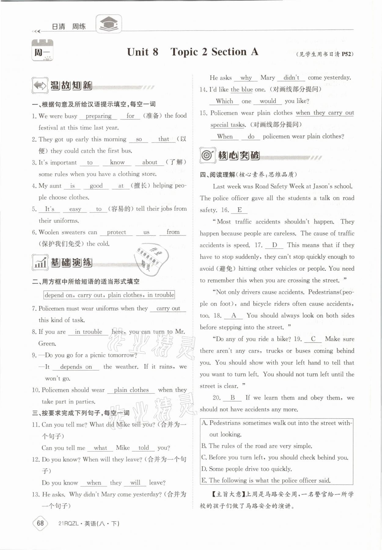 注:目前有些书本章节名称可能整理的还不是很完善,但都是按照顺序排列的,请同学们按照顺序仔细查找。练习册 2021年日清周练八年级英语下册外研版 答案主要是用来给同学们做完题方便对答案用的,请勿直接抄袭。