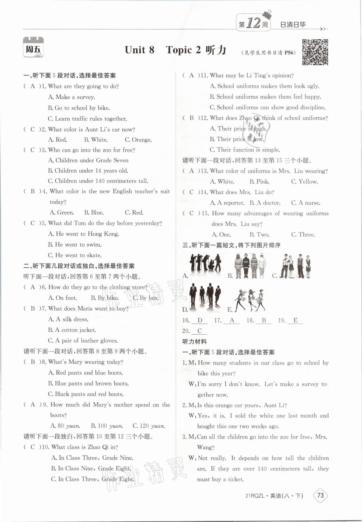 注:目前有些书本章节名称可能整理的还不是很完善,但都是按照顺序排列的,请同学们按照顺序仔细查找。练习册 2021年日清周练八年级英语下册外研版 答案主要是用来给同学们做完题方便对答案用的,请勿直接抄袭。