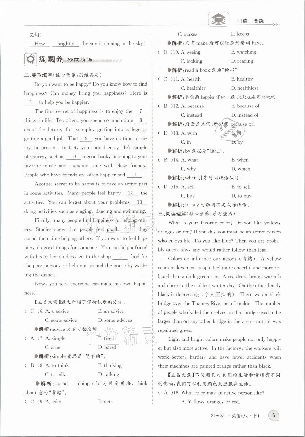 注:目前有些书本章节名称可能整理的还不是很完善,但都是按照顺序排列的,请同学们按照顺序仔细查找。练习册 2021年日清周练八年级英语下册外研版 答案主要是用来给同学们做完题方便对答案用的,请勿直接抄袭。