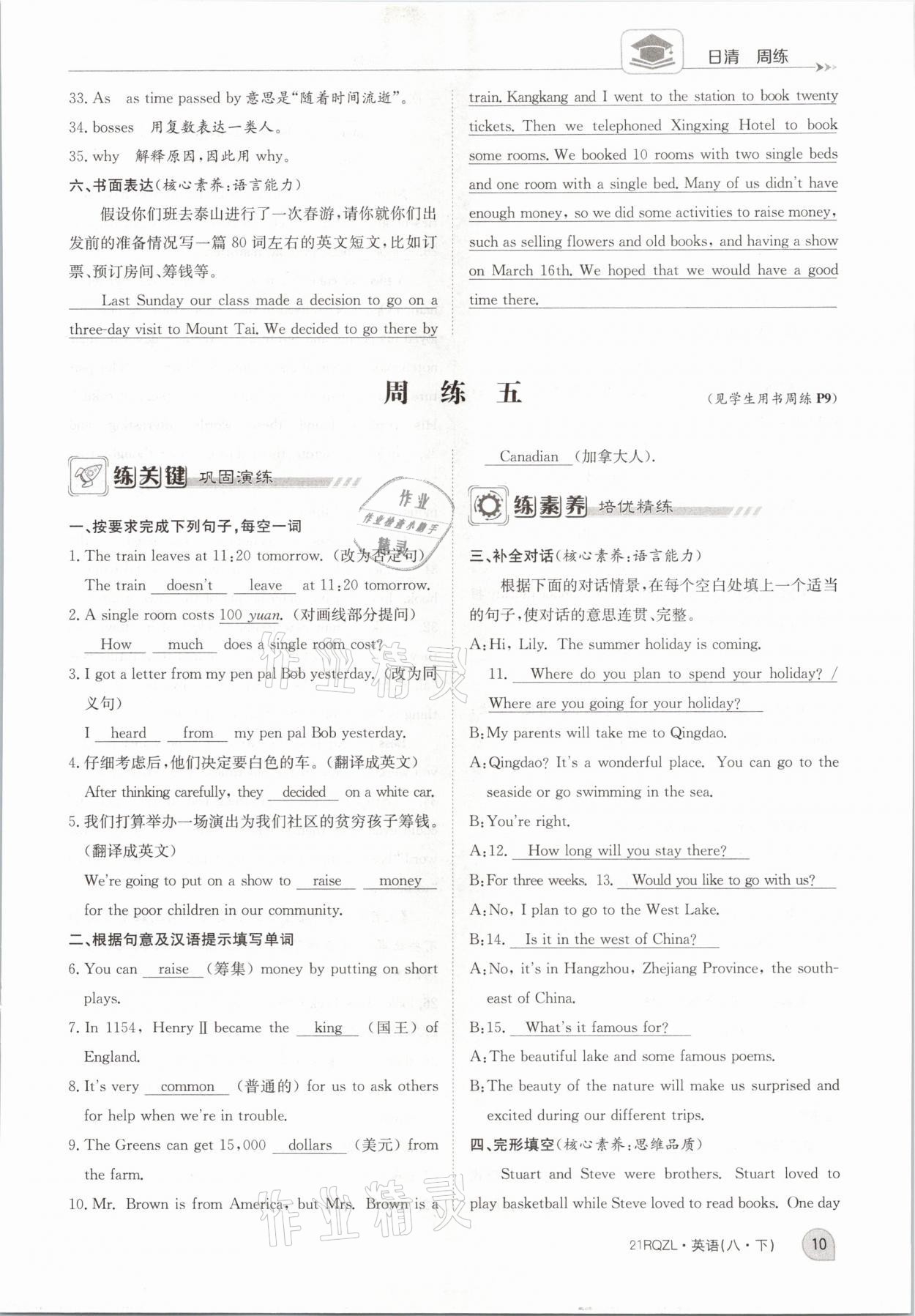 注:目前有些书本章节名称可能整理的还不是很完善,但都是按照顺序排列的,请同学们按照顺序仔细查找。练习册 2021年日清周练八年级英语下册外研版 答案主要是用来给同学们做完题方便对答案用的,请勿直接抄袭。