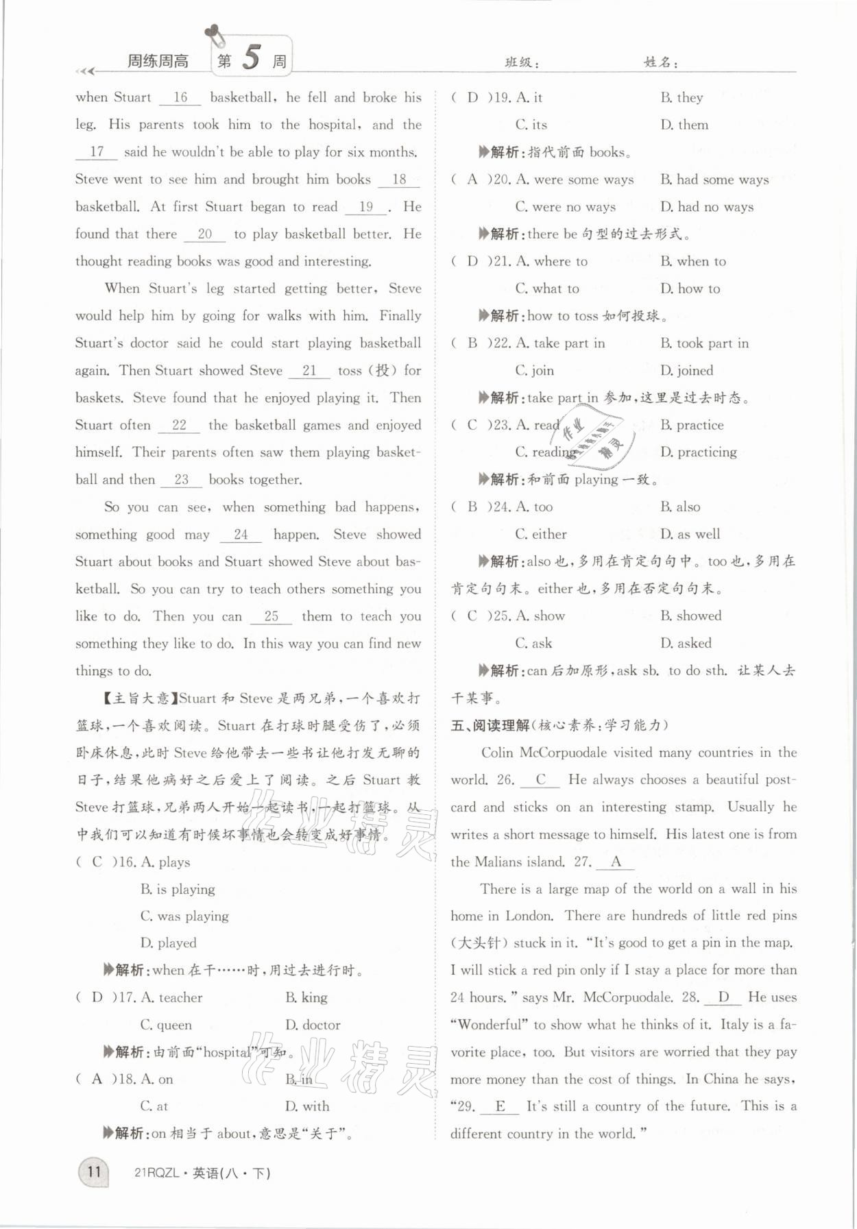 注:目前有些书本章节名称可能整理的还不是很完善,但都是按照顺序排列的,请同学们按照顺序仔细查找。练习册 2021年日清周练八年级英语下册外研版 答案主要是用来给同学们做完题方便对答案用的,请勿直接抄袭。