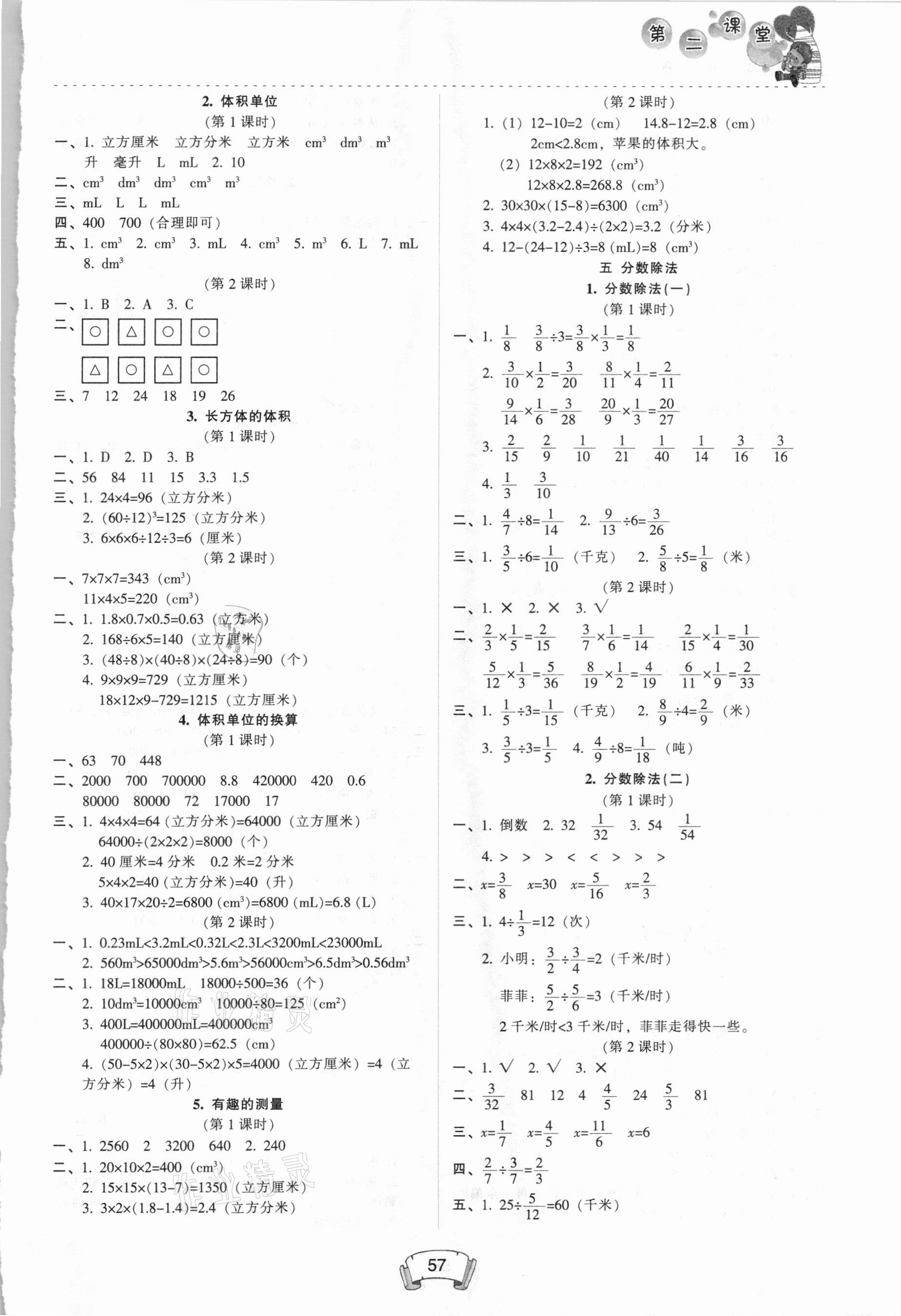 注:目前有些书本章节名称可能整理的还不是很完善,但都是按照顺序排列的,请同学们按照顺序仔细查找。练习册 2021年第二课堂五年级数学下册北师大版 答案主要是用来给同学们做完题方便对答案用的,请勿直接抄袭。