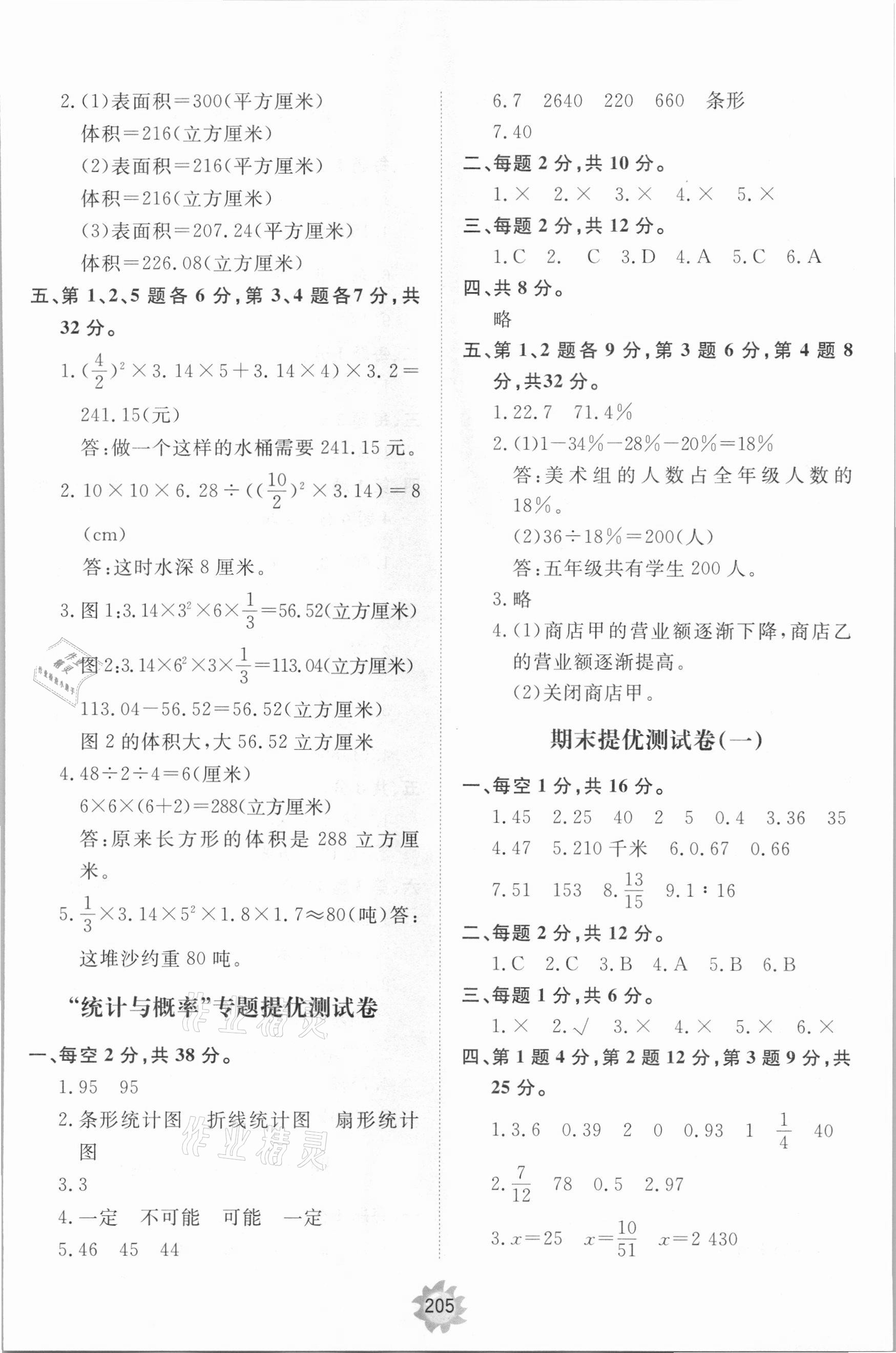 2021年同步练习册提优测试卷六年级数学下册青岛版