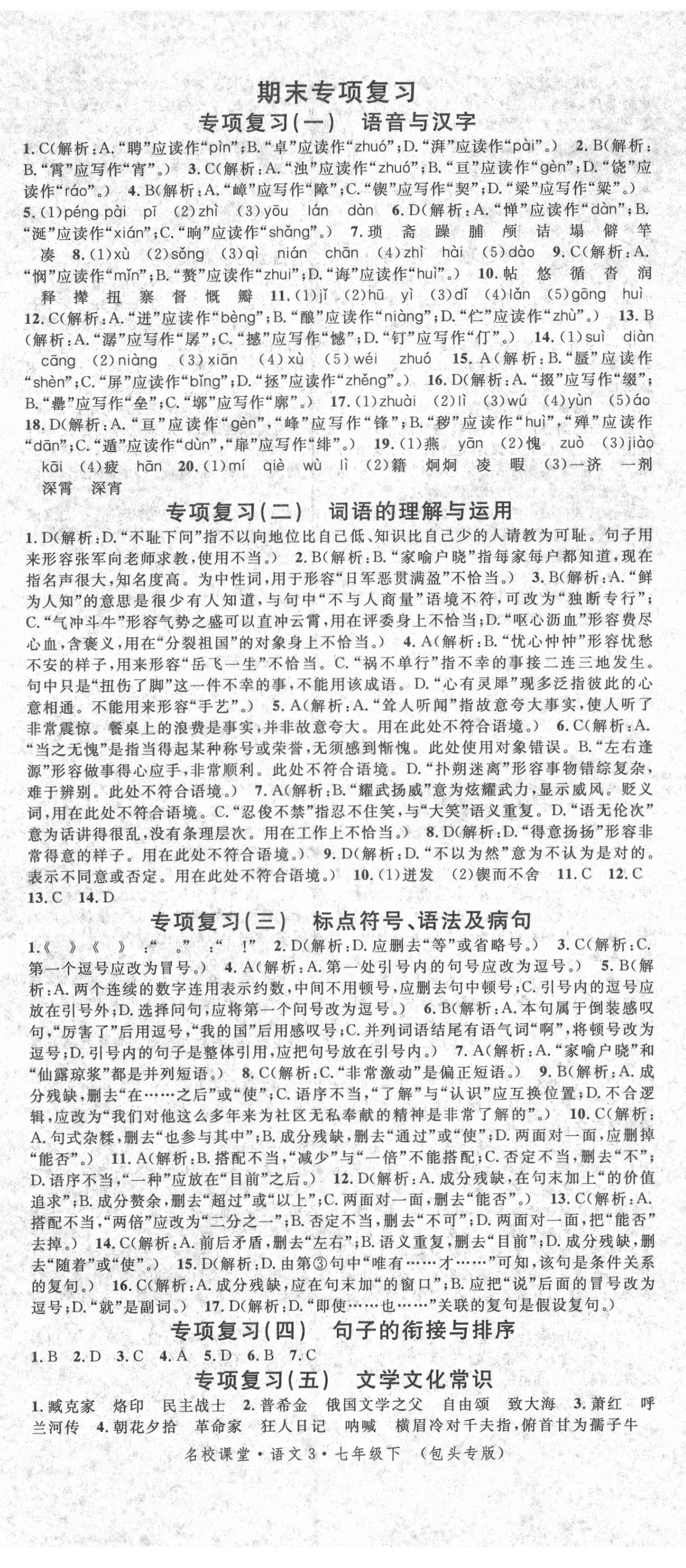 注:目前有些书本章节名称可能整理的还不是很完善,但都是按照顺序排列的,请同学们按照顺序仔细查找。练习册 2021年名校课堂七年级语文下册人教版3包头专版 答案主要是用来给同学们做完题方便对答案用的,请勿直接抄袭。