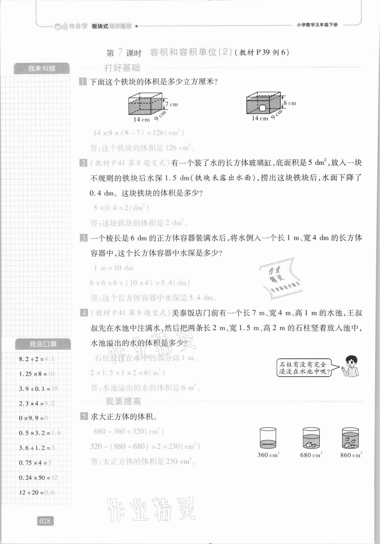 注:目前有些书本章节名称可能整理的还不是很完善,但都是按照顺序排列的,请同学们按照顺序仔细查找。练习册 2021年我会学板块式同步练习五年级数学下册人教版 答案主要是用来给同学们做完题方便对答案用的,请勿直接抄袭。