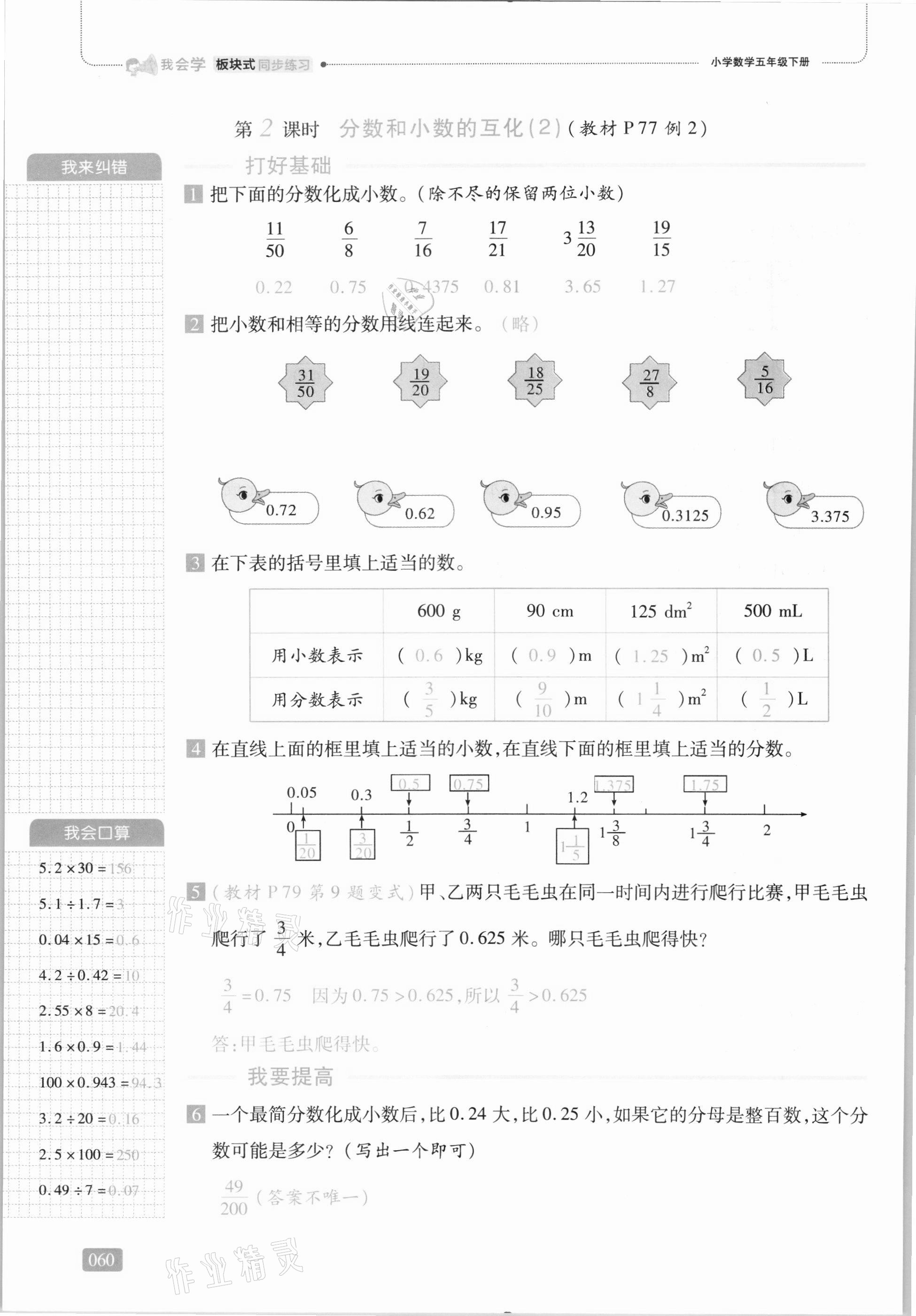 《2021年我会学板块式同步练习五年级数学下册人教版》