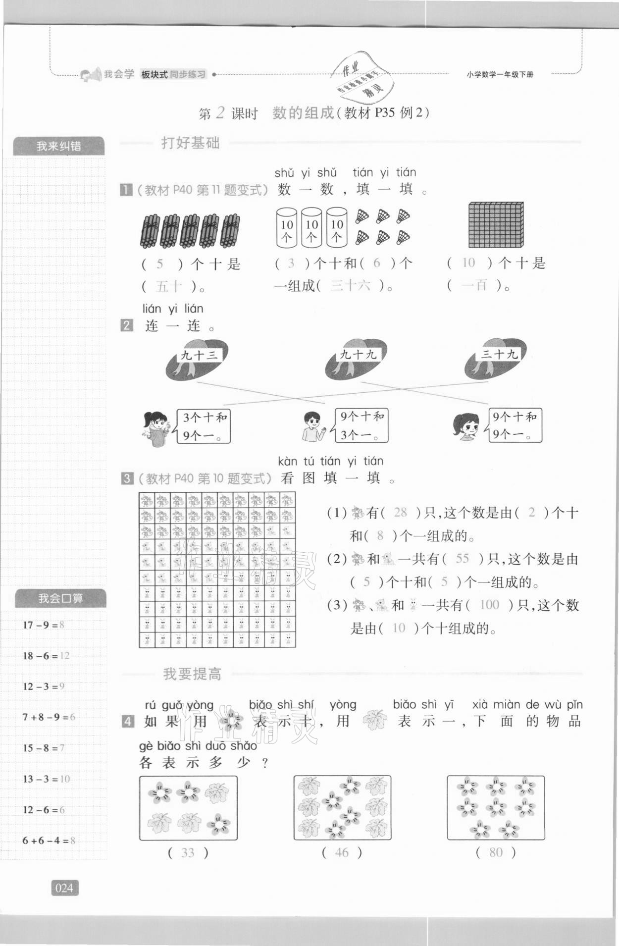 注:目前有些书本章节名称可能整理的还不是很完善,但都是按照顺序排列的,请同学们按照顺序仔细查找。练习册 2021年我会学板块式同步练习一年级数学下册人教版 答案主要是用来给同学们做完题方便对答案用的,请勿直接抄袭。