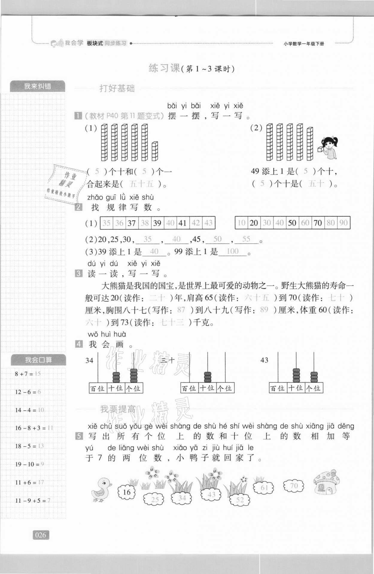 注:目前有些书本章节名称可能整理的还不是很完善,但都是按照顺序排列的,请同学们按照顺序仔细查找。练习册 2021年我会学板块式同步练习一年级数学下册人教版 答案主要是用来给同学们做完题方便对答案用的,请勿直接抄袭。
