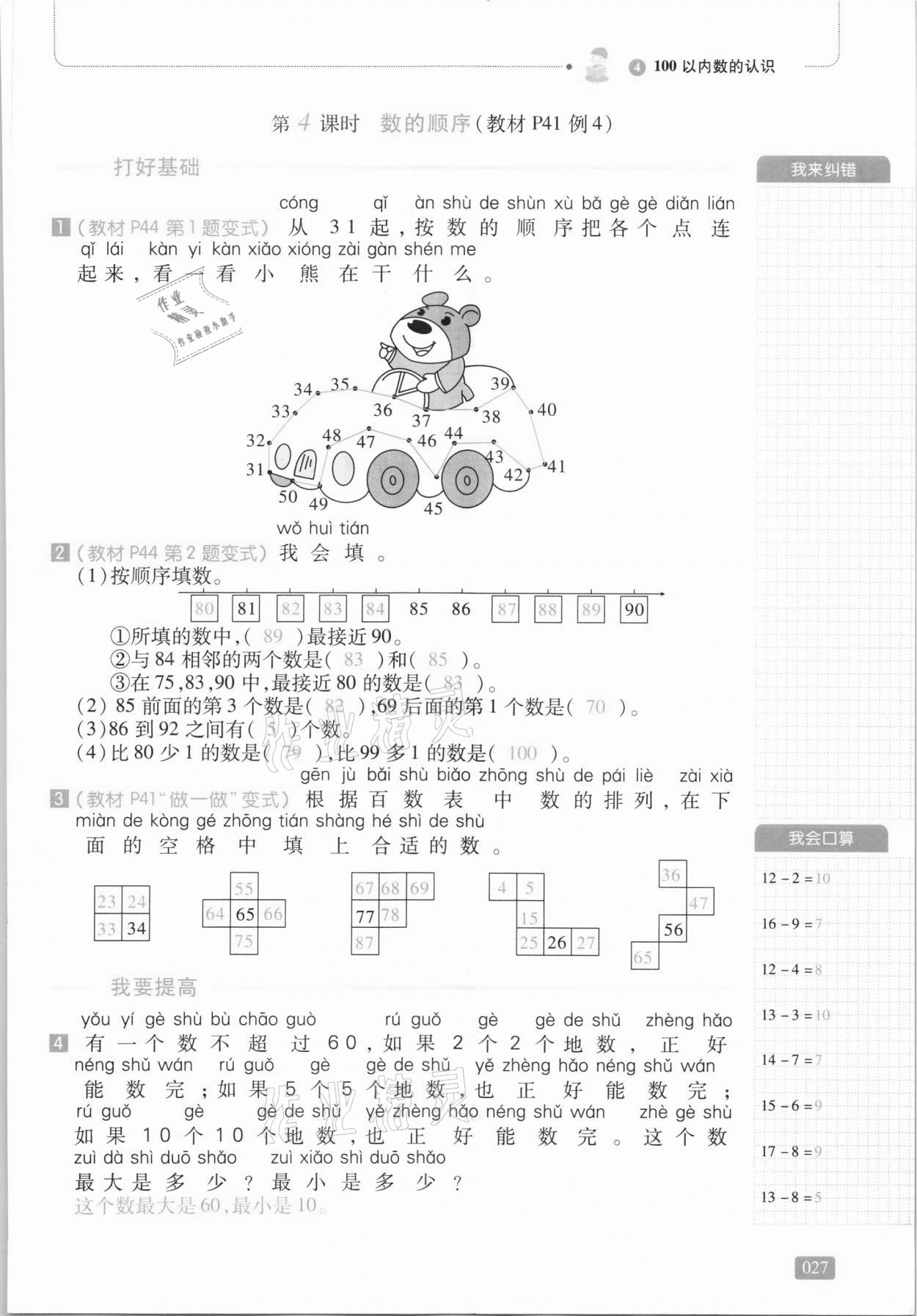 注:目前有些书本章节名称可能整理的还不是很完善,但都是按照顺序排列的,请同学们按照顺序仔细查找。练习册 2021年我会学板块式同步练习一年级数学下册人教版 答案主要是用来给同学们做完题方便对答案用的,请勿直接抄袭。