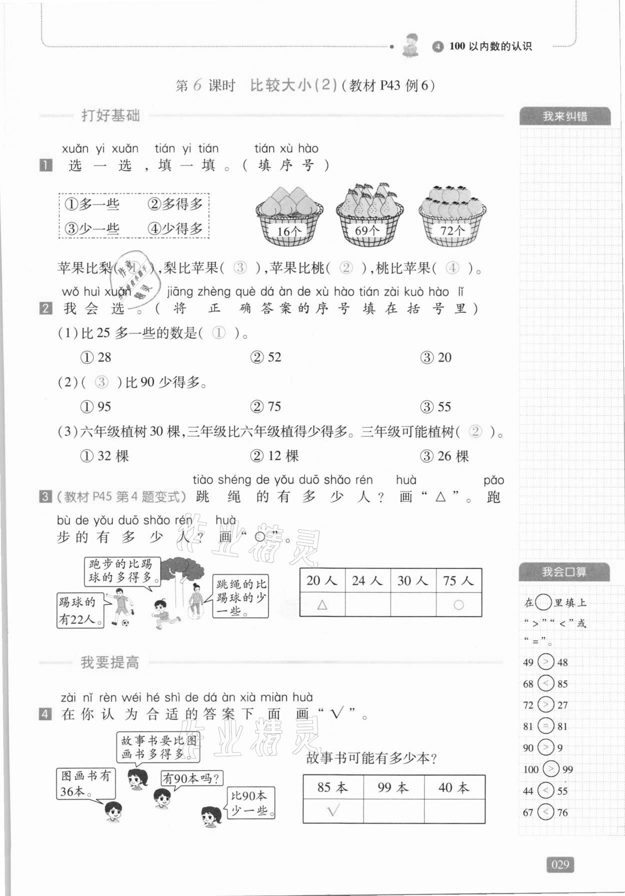 注:目前有些书本章节名称可能整理的还不是很完善,但都是按照顺序排列的,请同学们按照顺序仔细查找。练习册 2021年我会学板块式同步练习一年级数学下册人教版 答案主要是用来给同学们做完题方便对答案用的,请勿直接抄袭。