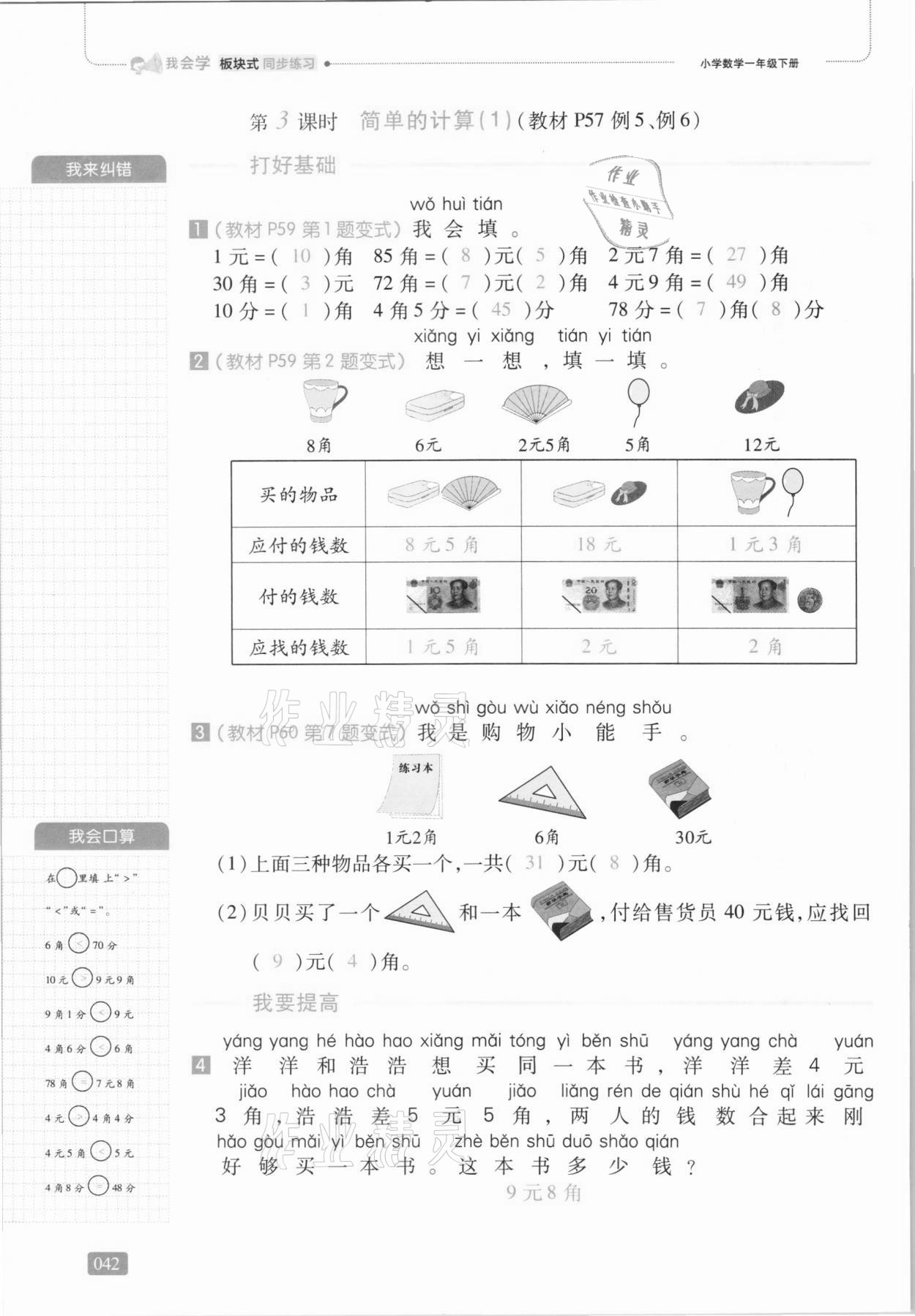 注:目前有些书本章节名称可能整理的还不是很完善,但都是按照顺序排列的,请同学们按照顺序仔细查找。练习册 2021年我会学板块式同步练习一年级数学下册人教版 答案主要是用来给同学们做完题方便对答案用的,请勿直接抄袭。