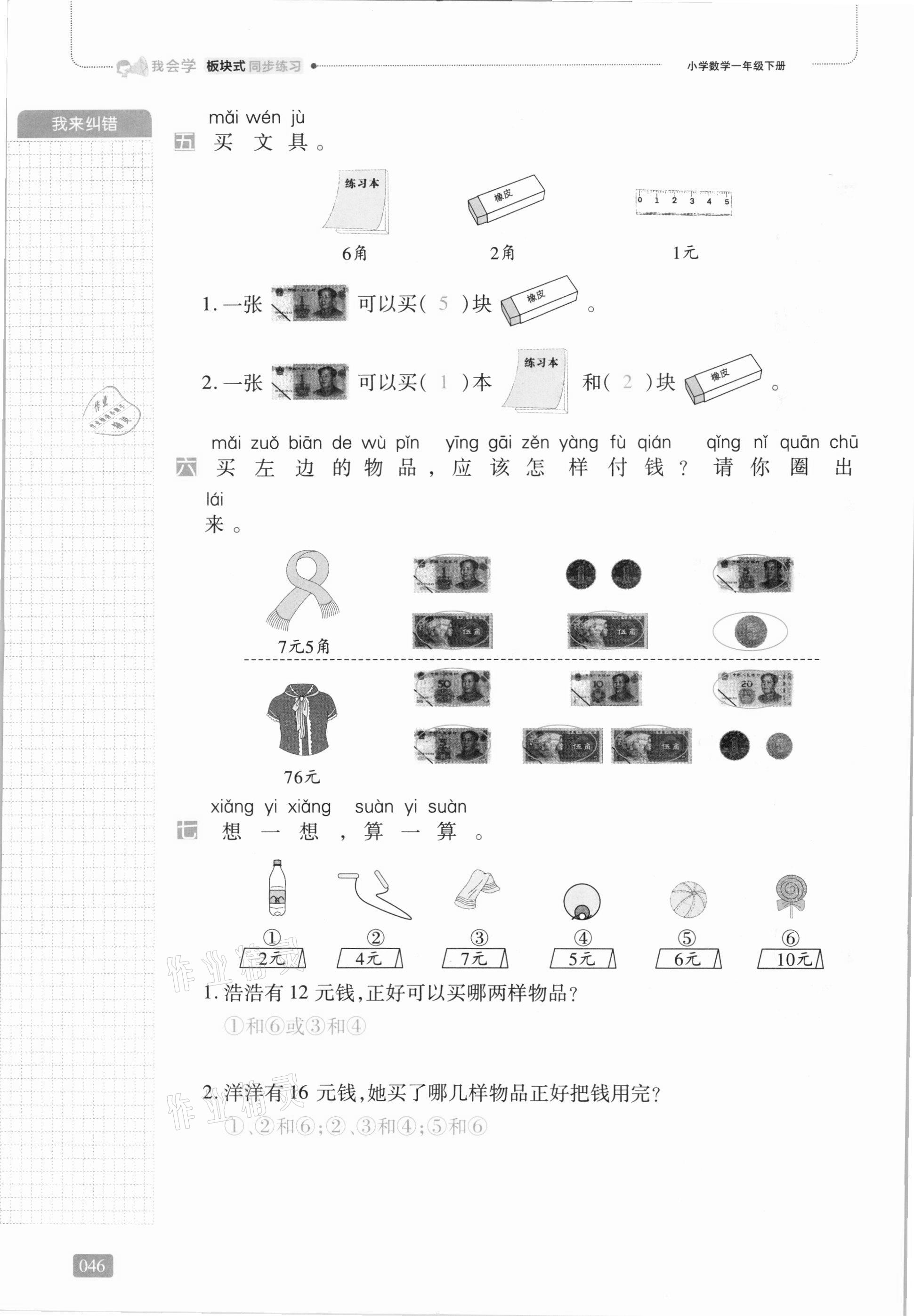 注:目前有些书本章节名称可能整理的还不是很完善,但都是按照顺序排列的,请同学们按照顺序仔细查找。练习册 2021年我会学板块式同步练习一年级数学下册人教版 答案主要是用来给同学们做完题方便对答案用的,请勿直接抄袭。