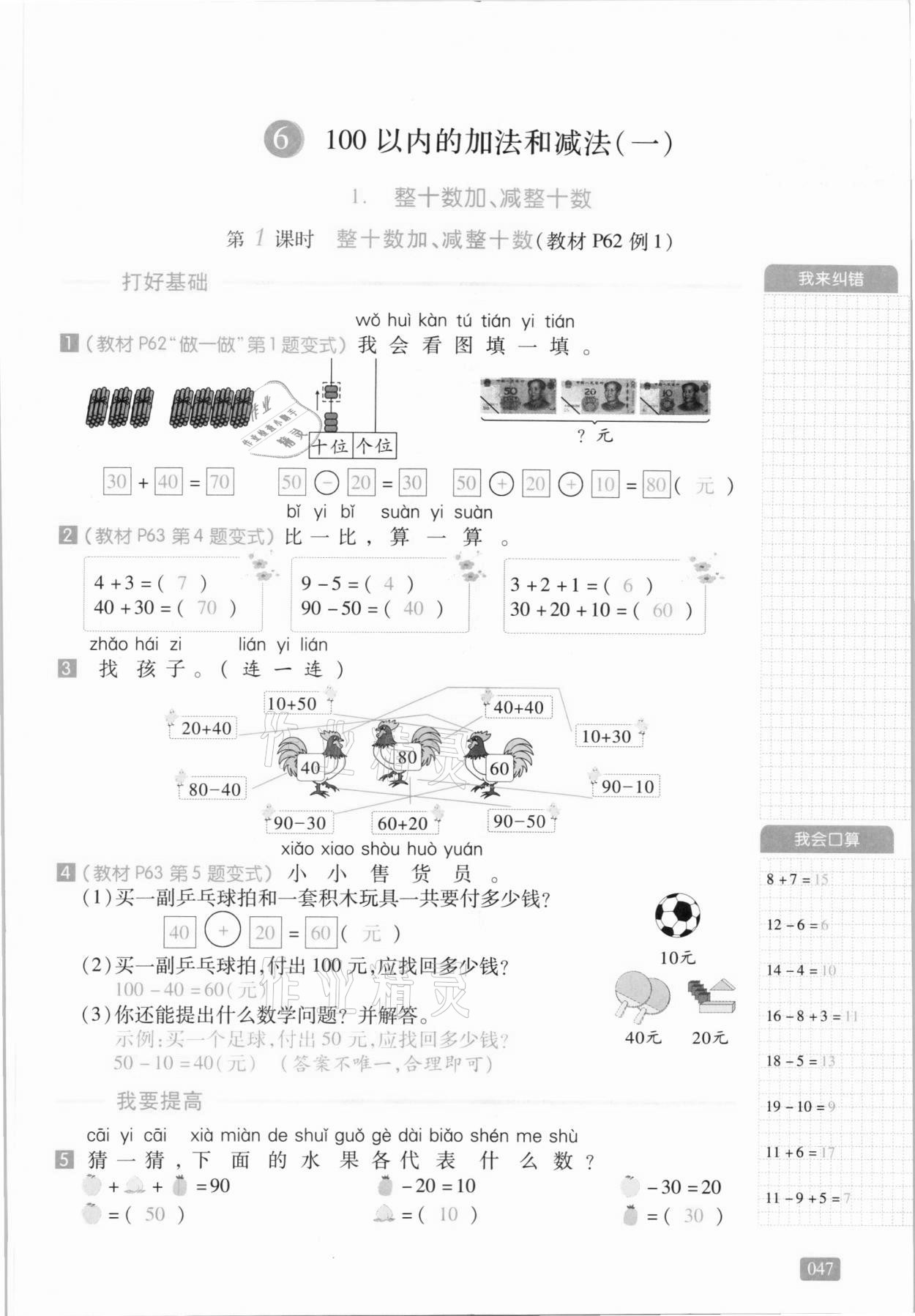 注:目前有些书本章节名称可能整理的还不是很完善,但都是按照顺序排列的,请同学们按照顺序仔细查找。练习册 2021年我会学板块式同步练习一年级数学下册人教版 答案主要是用来给同学们做完题方便对答案用的,请勿直接抄袭。