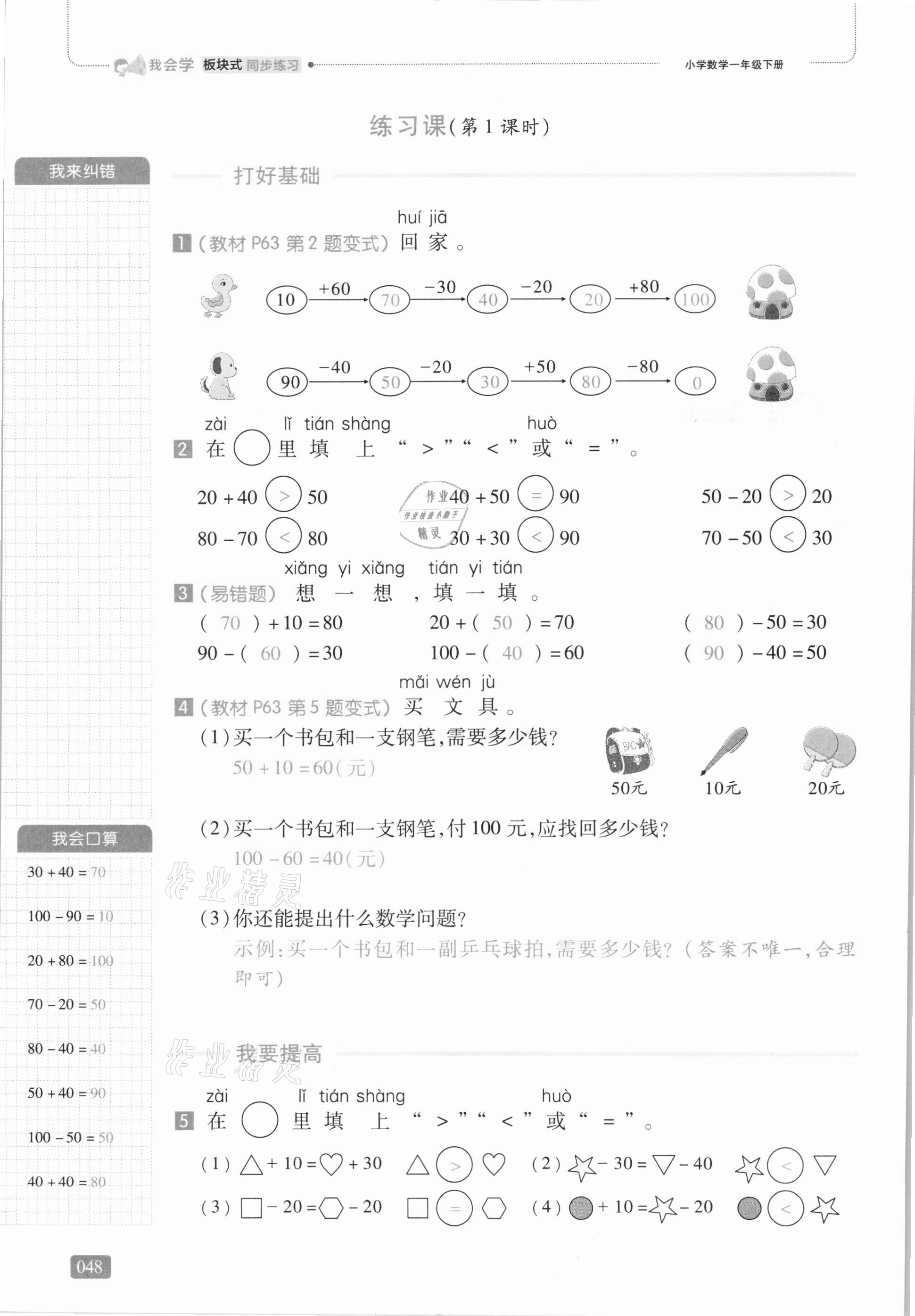 注:目前有些书本章节名称可能整理的还不是很完善,但都是按照顺序排列的,请同学们按照顺序仔细查找。练习册 2021年我会学板块式同步练习一年级数学下册人教版 答案主要是用来给同学们做完题方便对答案用的,请勿直接抄袭。