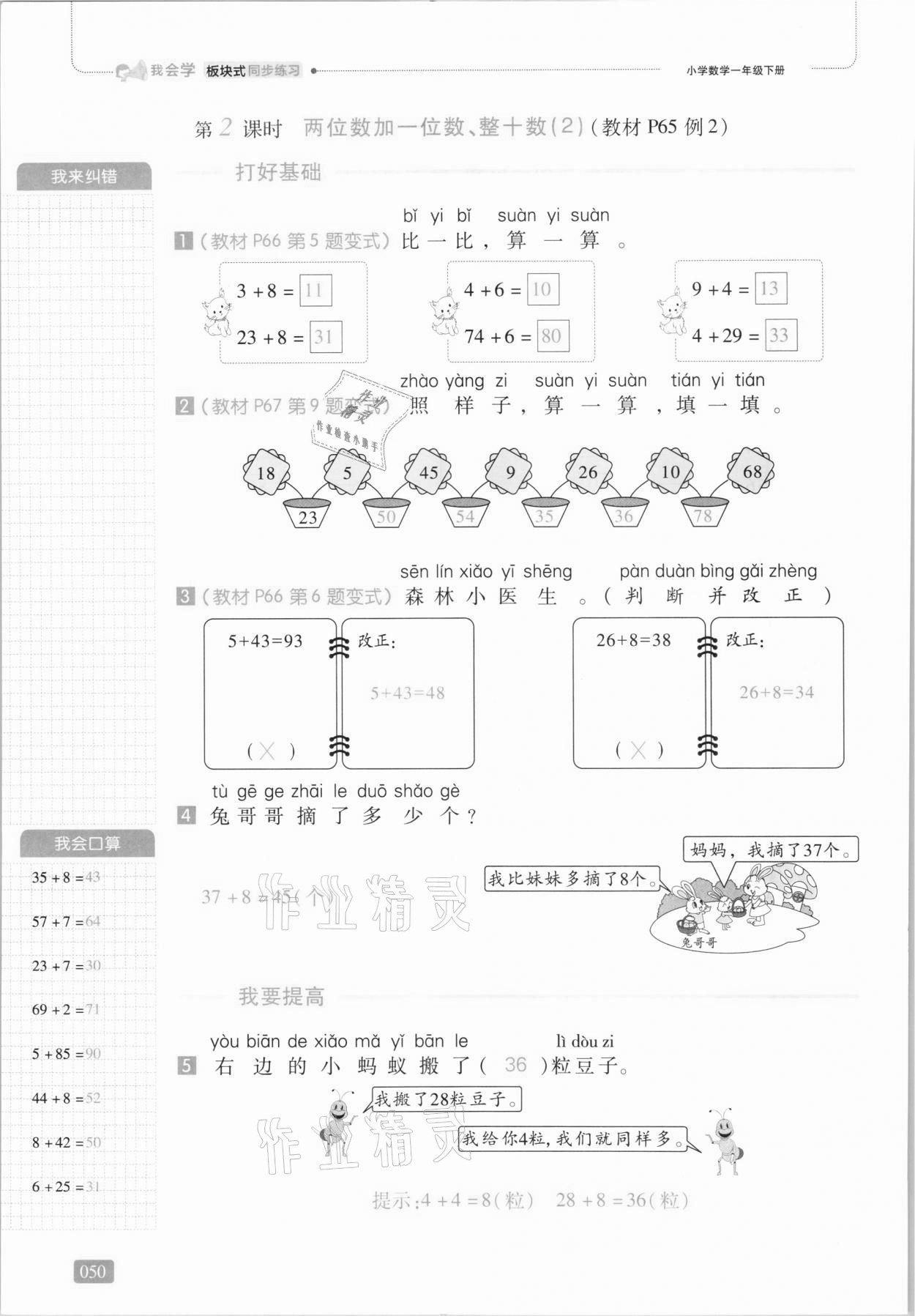 注:目前有些书本章节名称可能整理的还不是很完善,但都是按照顺序排列的,请同学们按照顺序仔细查找。练习册 2021年我会学板块式同步练习一年级数学下册人教版 答案主要是用来给同学们做完题方便对答案用的,请勿直接抄袭。
