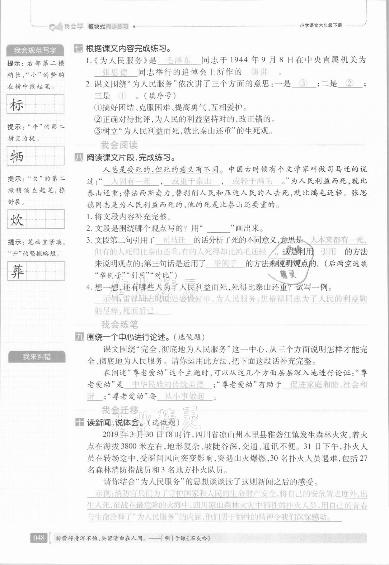 注:目前有些书本章节名称可能整理的还不是很完善,但都是按照顺序排列的,请同学们按照顺序仔细查找。练习册 2021年我会学板块式同步练习六年级语文下册人教版 答案主要是用来给同学们做完题方便对答案用的,请勿直接抄袭。