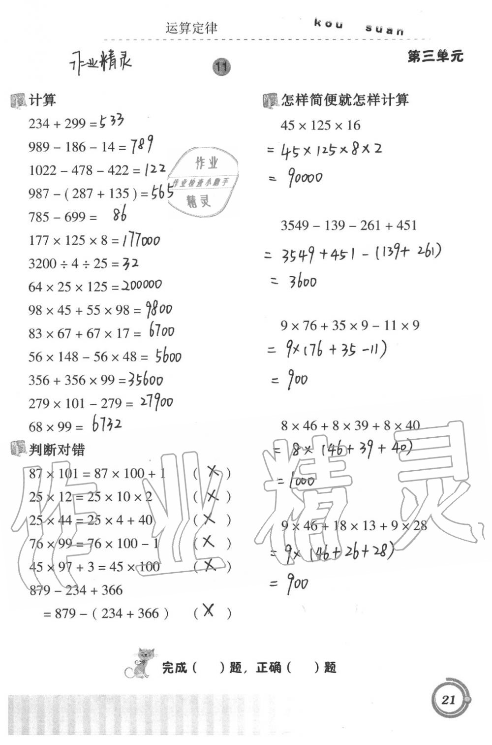 注:目前有些书本章节名称可能整理的还不是很完善,但都是按照顺序排列的,请同学们按照顺序仔细查找。练习册 2021年口算基础训练四年级下册 答案主要是用来给同学们做完题方便对答案用的,请勿直接抄袭。