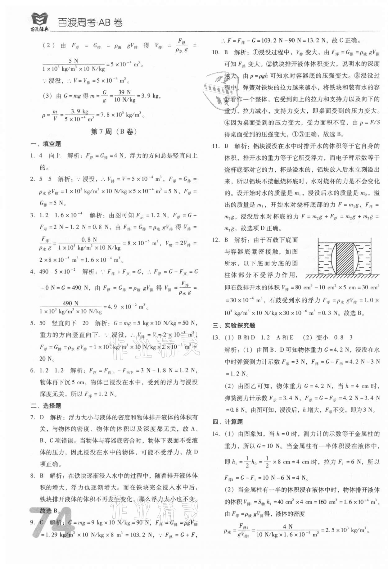 注:目前有些书本章节名称可能整理的还不是很完善,但都是按照顺序排列的,请同学们按照顺序仔细查找。练习册 2021年百渡周考AB卷八年级物理下册人教版 答案主要是用来给同学们做完题方便对答案用的,请勿直接抄袭。