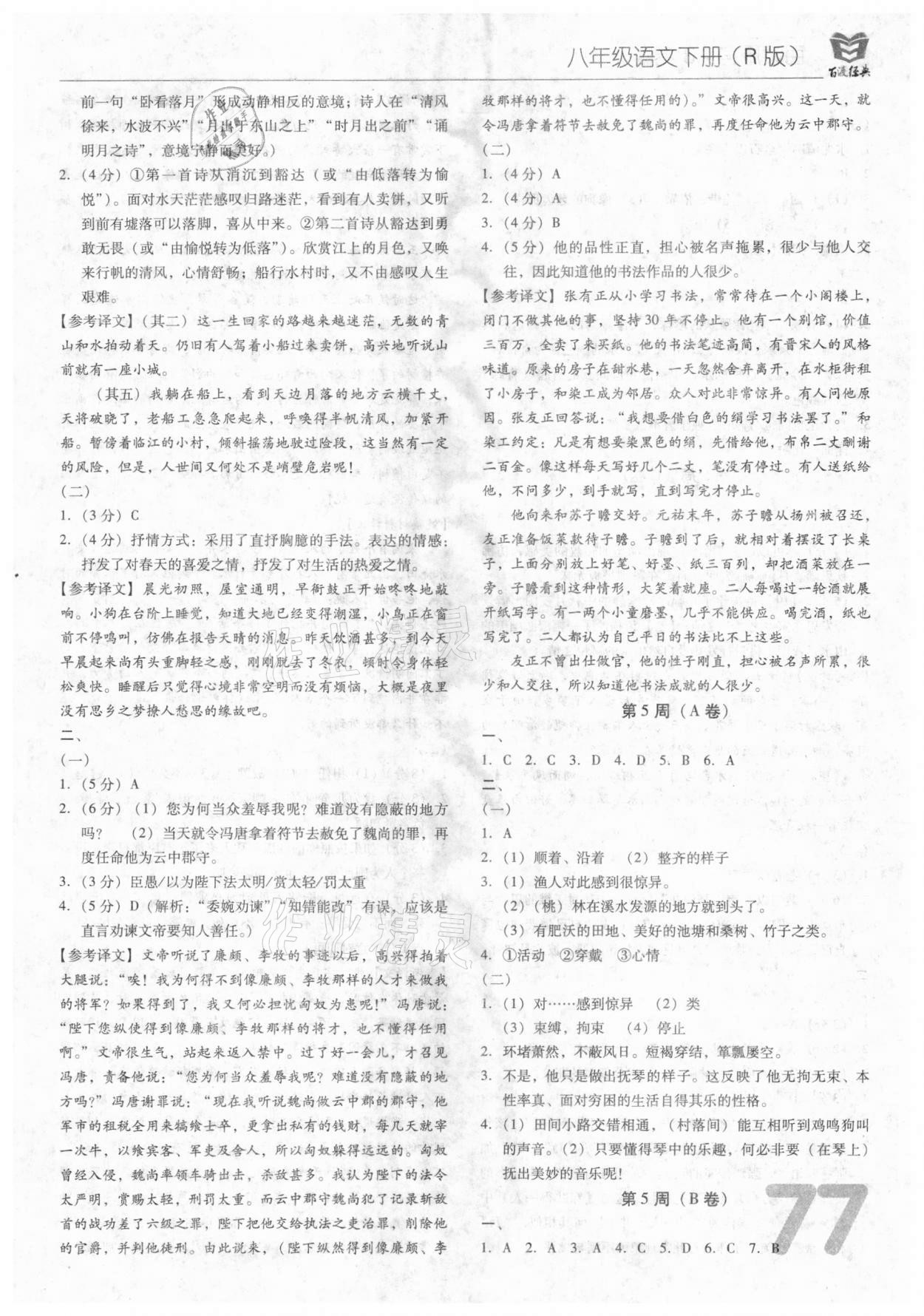 注:目前有些书本章节名称可能整理的还不是很完善,但都是按照顺序排列的,请同学们按照顺序仔细查找。练习册 2021年百渡周考AB卷八年级语文下册人教版 答案主要是用来给同学们做完题方便对答案用的,请勿直接抄袭。