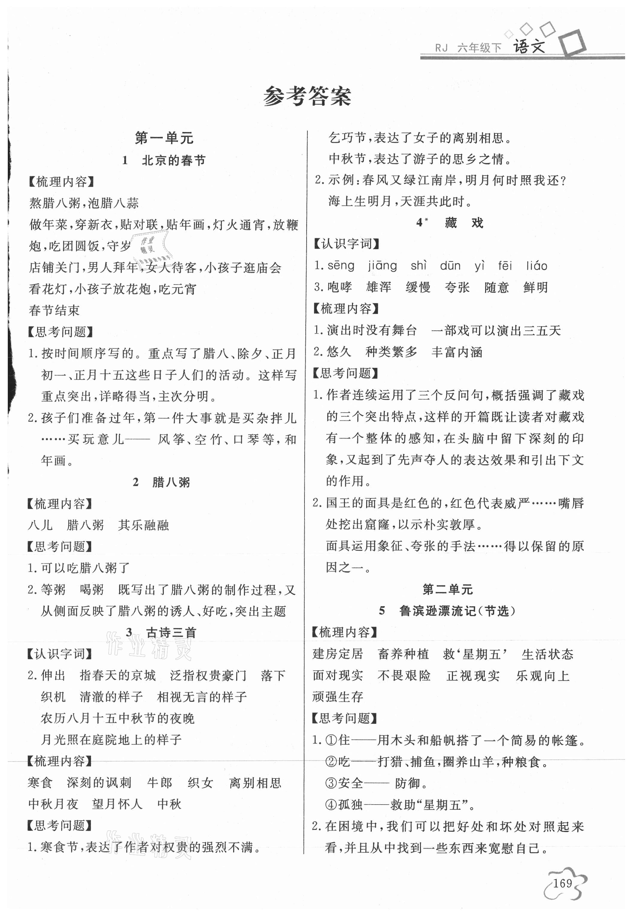 注:目前有些书本章节名称可能整理的还不是很完善,但都是按照顺序排列的,请同学们按照顺序仔细查找。练习册 2021年小状元冲刺100分随堂手册六年级语文下册人教版 答案主要是用来给同学们做完题方便对答案用的,请勿直接抄袭。