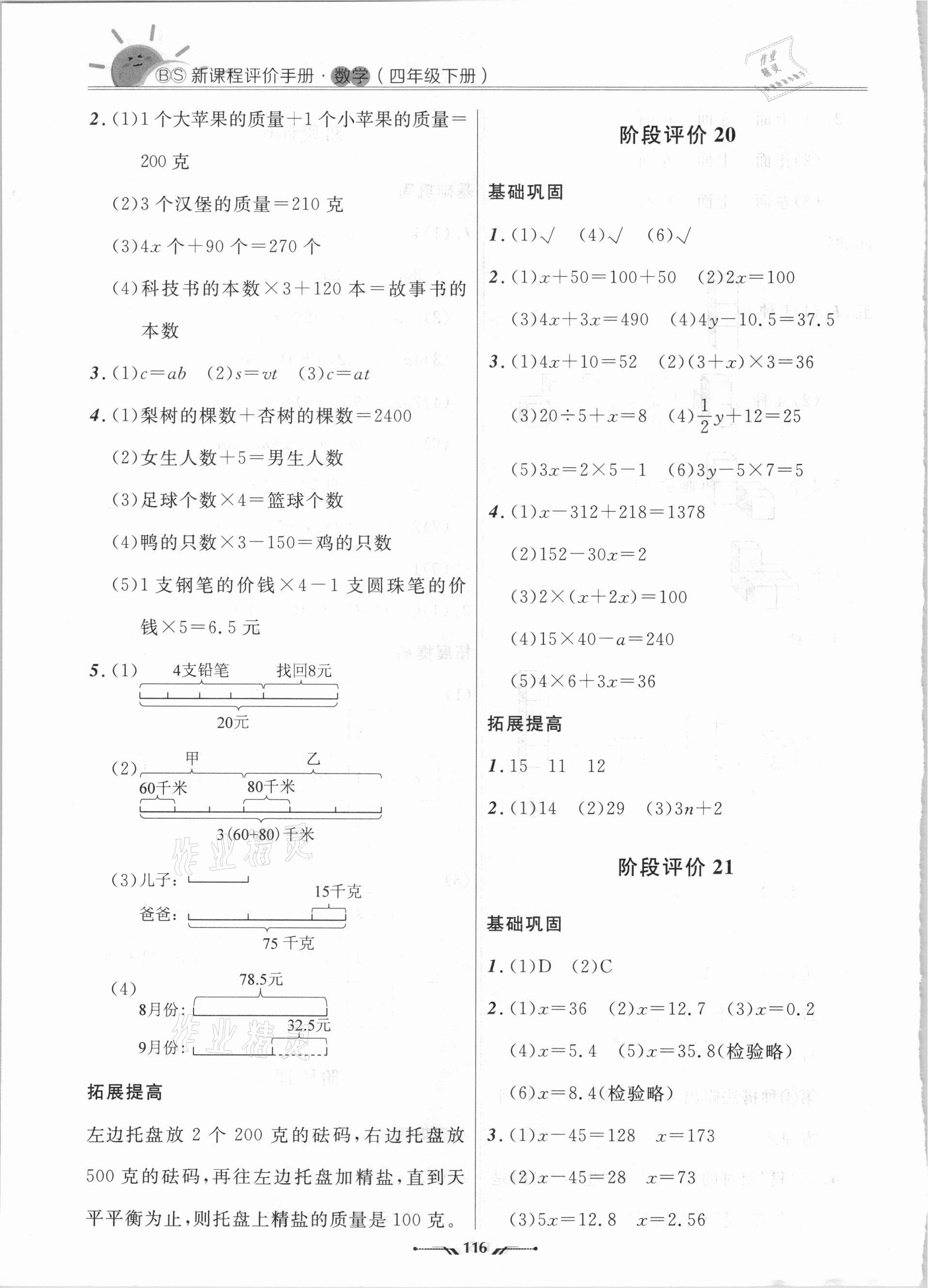注:目前有些书本章节名称可能整理的还不是很完善,但都是按照顺序排列的,请同学们按照顺序仔细查找。练习册 2021年新课程评价手册四年级数学下册北师大版 答案主要是用来给同学们做完题方便对答案用的,请勿直接抄袭。