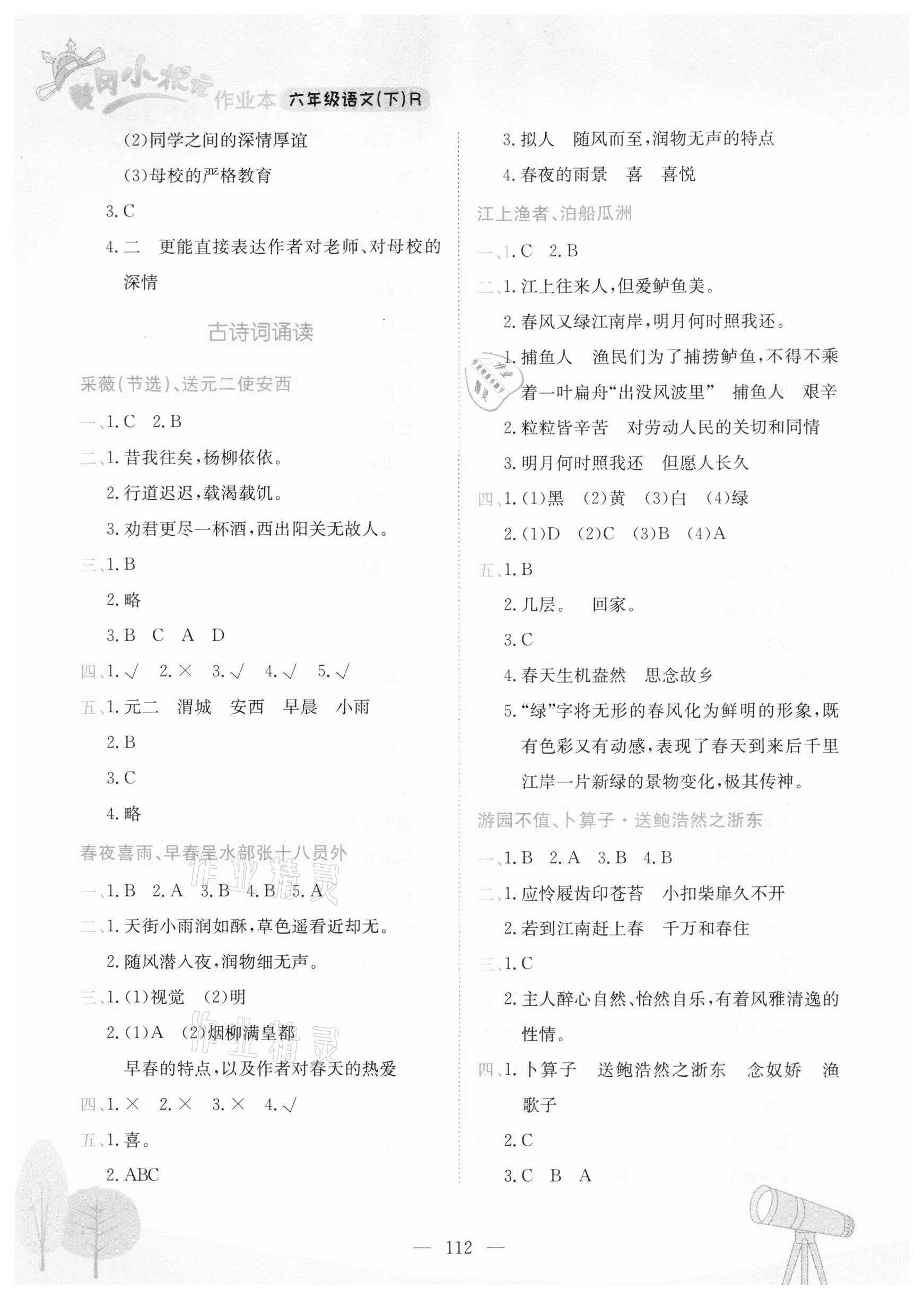 注:目前有些书本章节名称可能整理的还不是很完善,但都是按照顺序排列的,请同学们按照顺序仔细查找。练习册 2021年黄冈小状元作业本六年级语文下册人教版河南专版 答案主要是用来给同学们做完题方便对答案用的,请勿直接抄袭。