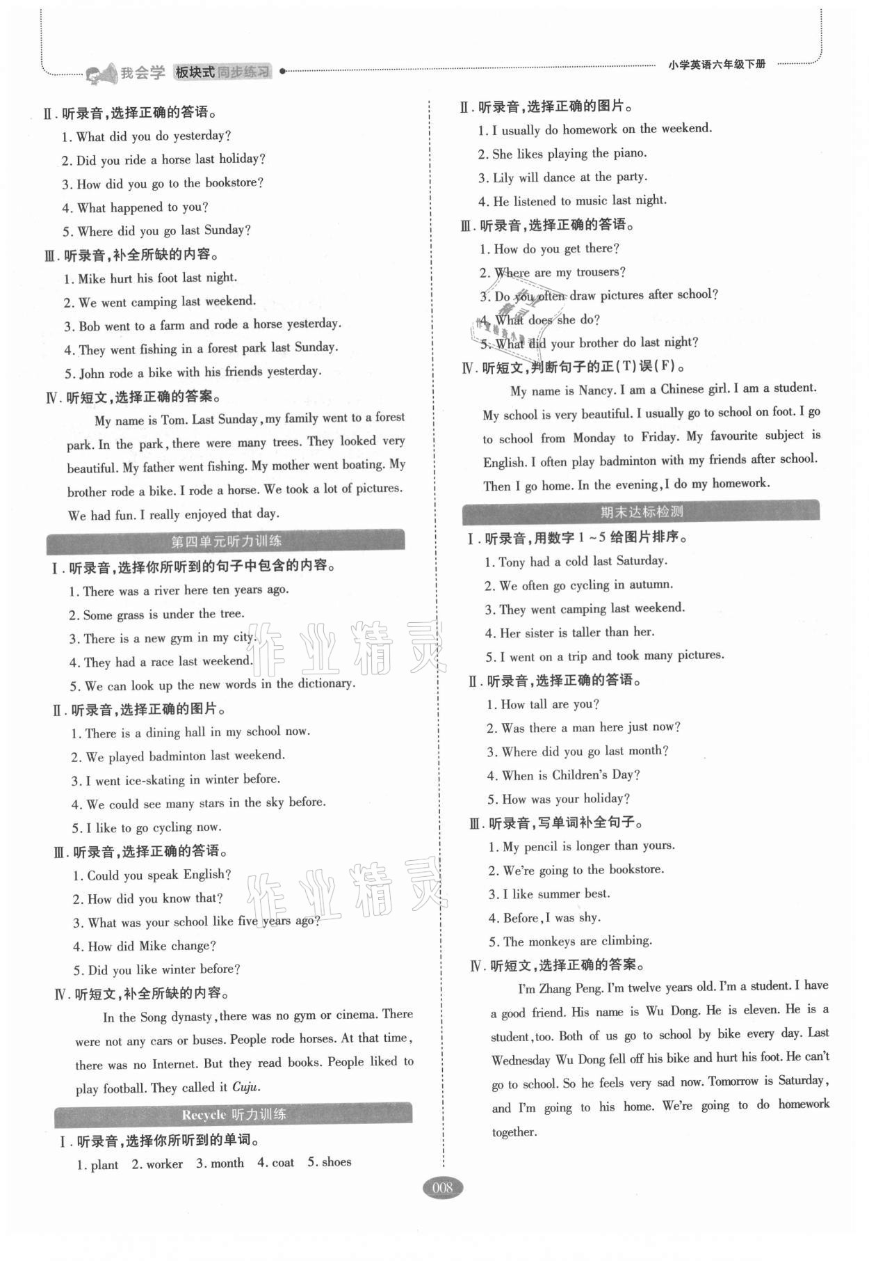 注:目前有些书本章节名称可能整理的还不是很完善,但都是按照顺序排列的,请同学们按照顺序仔细查找。练习册 2021年我会学板块式同步练习六年级英语下册人教PEP版 答案主要是用来给同学们做完题方便对答案用的,请勿直接抄袭。