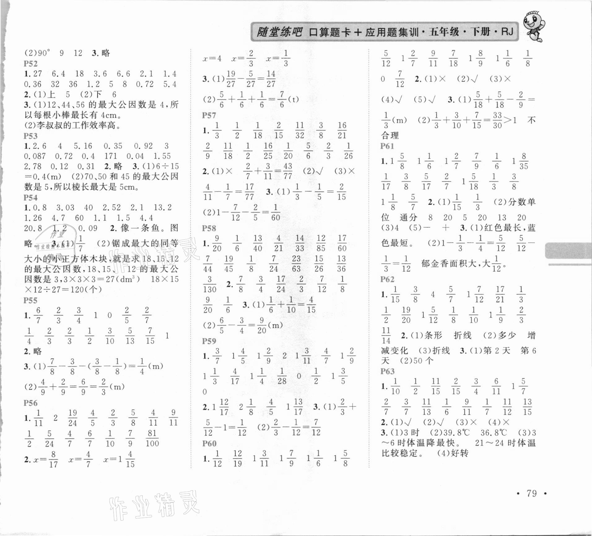 注:目前有些书本章节名称可能整理的还不是很完善,但都是按照顺序排列的,请同学们按照顺序仔细查找。练习册 2021年口算题卡加应用题集训五年级下册人教版 答案主要是用来给同学们做完题方便对答案用的,请勿直接抄袭。