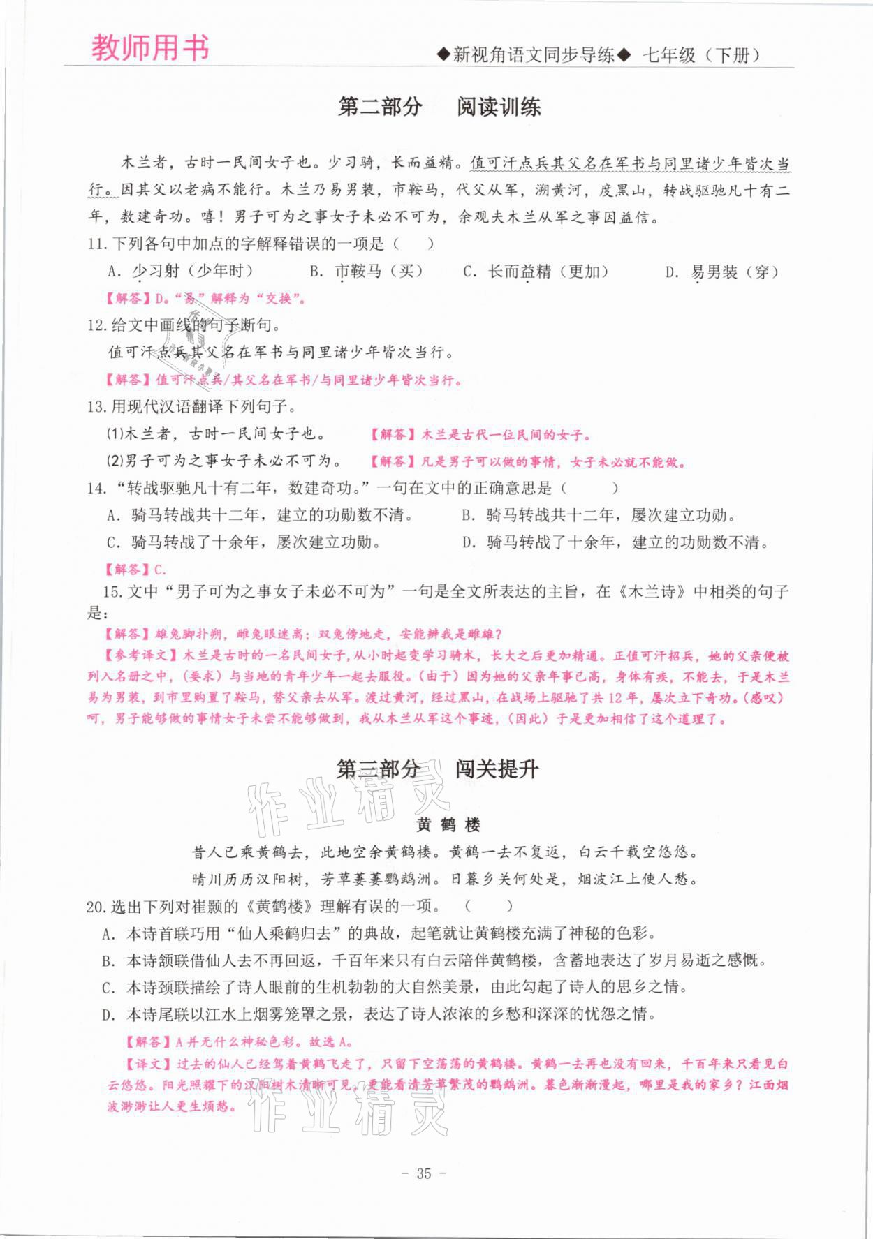 注:目前有些书本章节名称可能整理的还不是很完善,但都是按照顺序排列的,请同学们按照顺序仔细查找。练习册 2021年新视角教辅系列丛书七年级语文下册人教版 答案主要是用来给同学们做完题方便对答案用的,请勿直接抄袭。