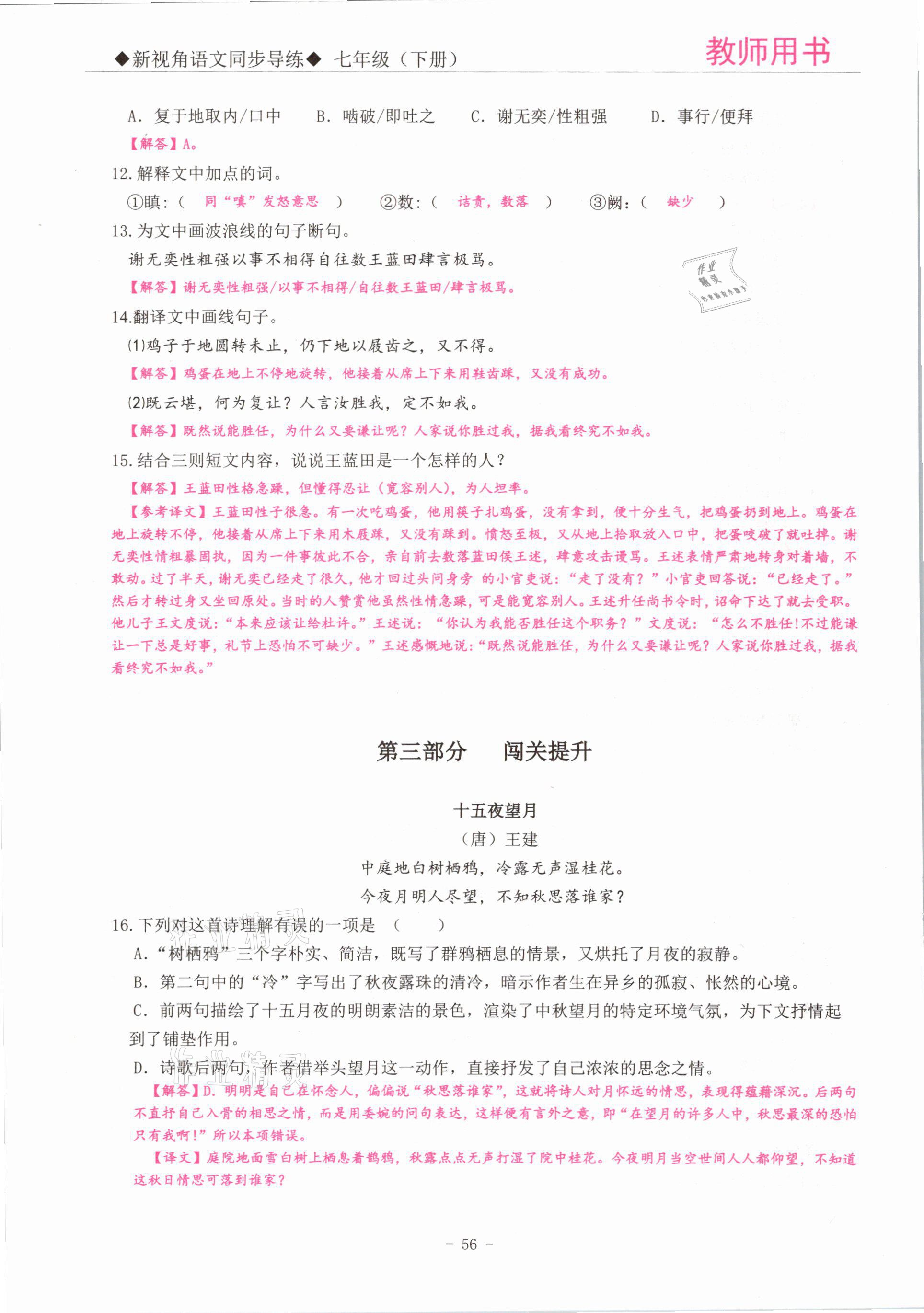 2021年新视角教辅系列丛书七年级语文下册人教版