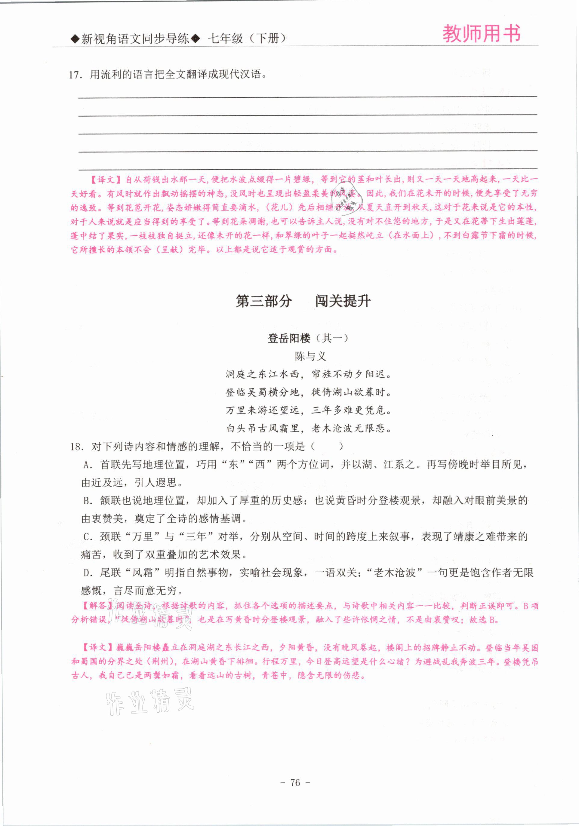 2021年新视角教辅系列丛书七年级语文下册人教版
