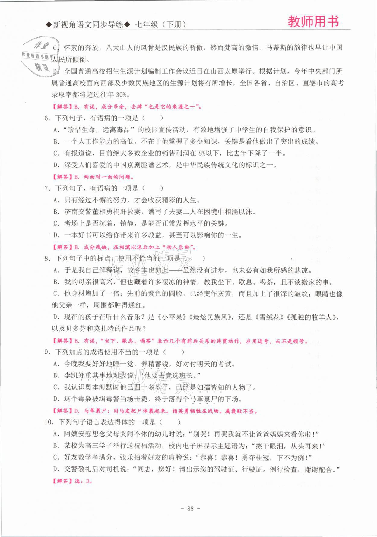 注:目前有些书本章节名称可能整理的还不是很完善,但都是按照顺序排列的,请同学们按照顺序仔细查找。练习册 2021年新视角教辅系列丛书七年级语文下册人教版 答案主要是用来给同学们做完题方便对答案用的,请勿直接抄袭。