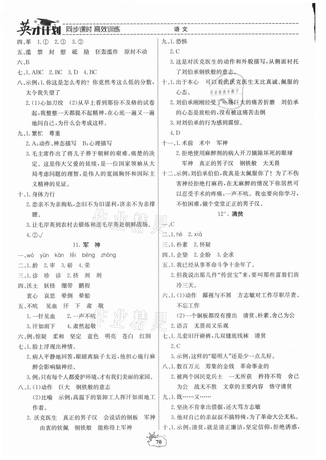 注:目前有些书本章节名称可能整理的还不是很完善,但都是按照顺序排列的,请同学们按照顺序仔细查找。练习册 2021年英才计划同步课时高效训练五年级语文下册人教版 答案主要是用来给同学们做完题方便对答案用的,请勿直接抄袭。