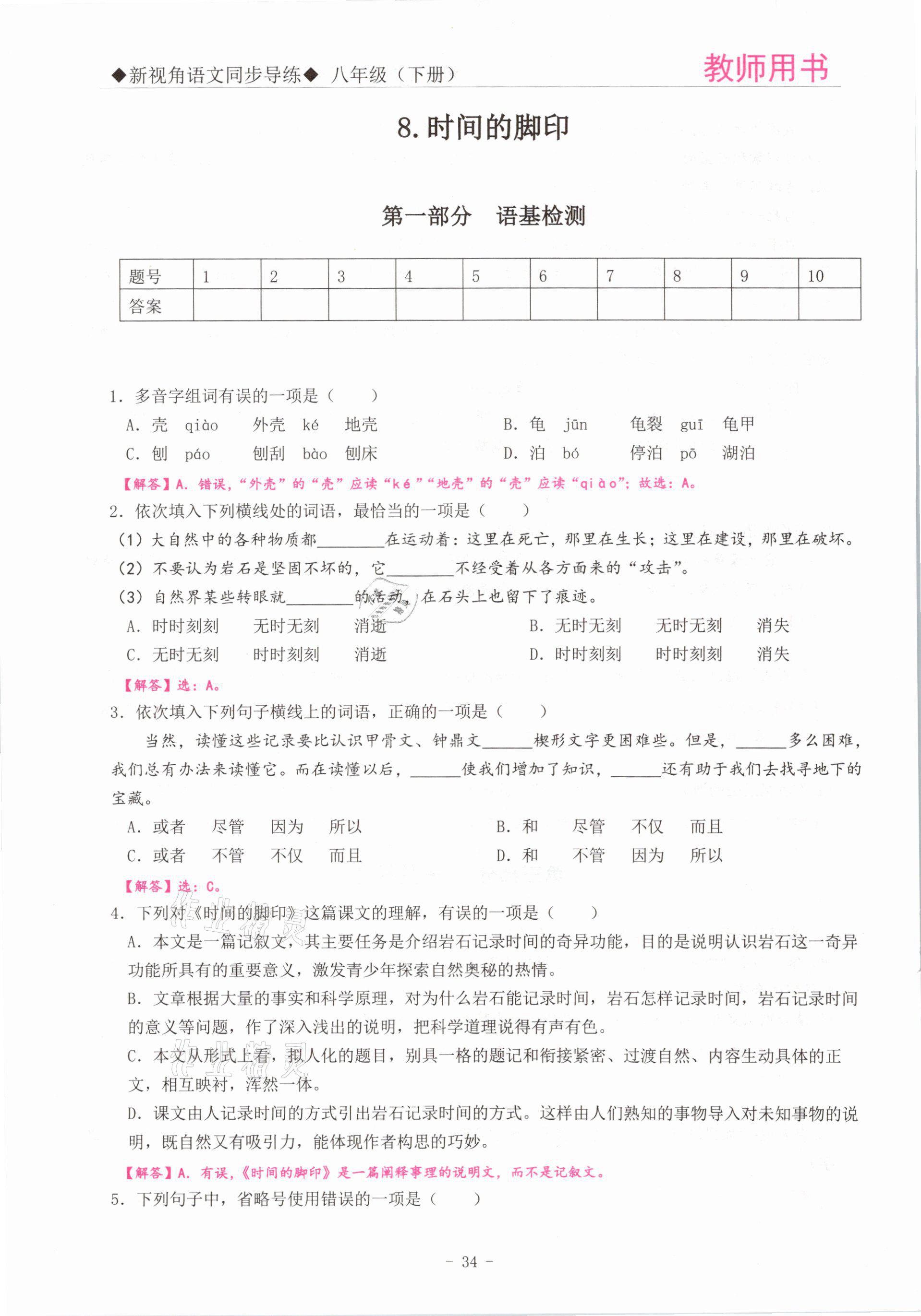 注:目前有些书本章节名称可能整理的还不是很完善,但都是按照顺序排列的,请同学们按照顺序仔细查找。练习册 2021年新视角教辅系列丛书八年级语文下册人教版 答案主要是用来给同学们做完题方便对答案用的,请勿直接抄袭。