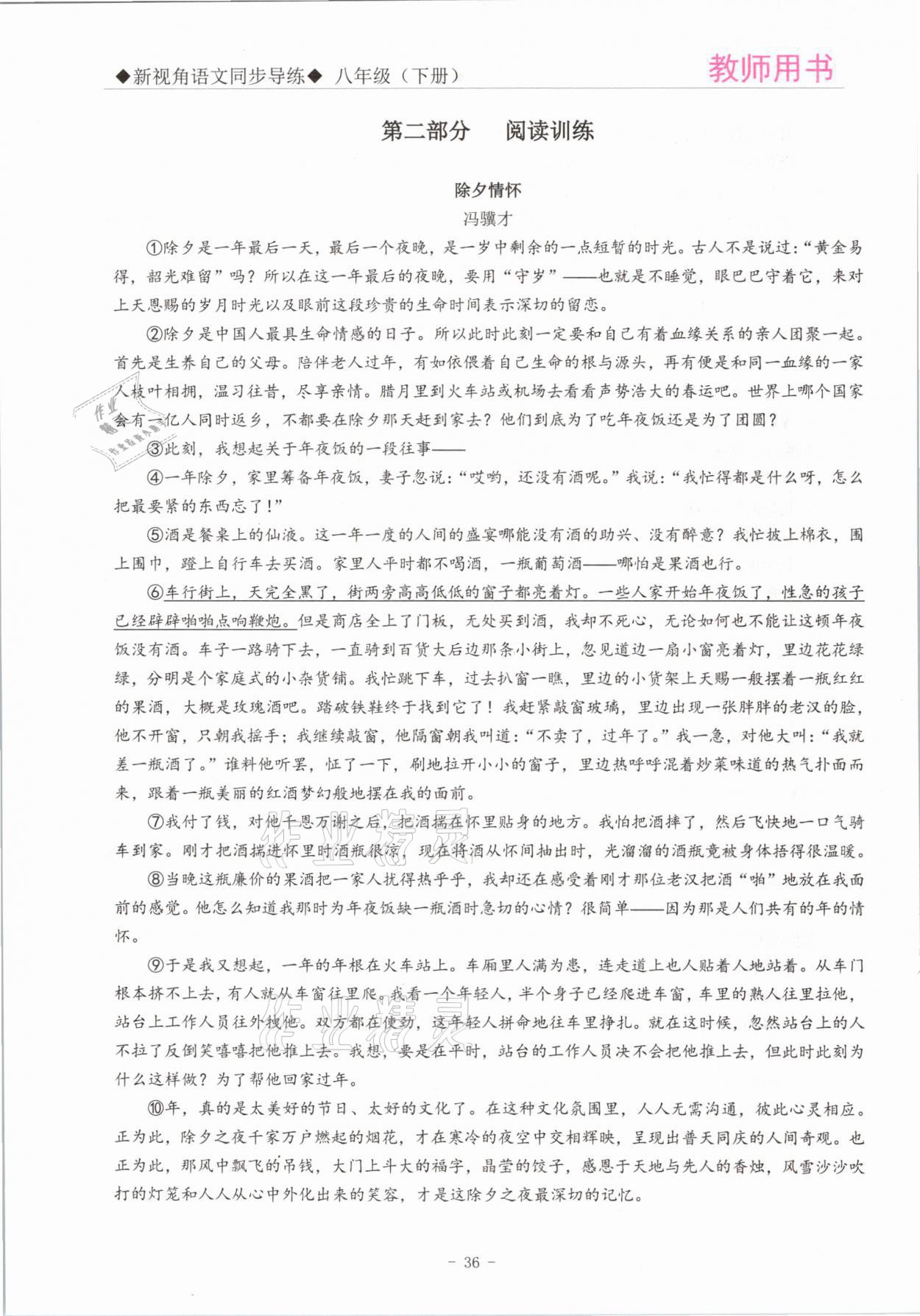 注:目前有些书本章节名称可能整理的还不是很完善,但都是按照顺序排列的,请同学们按照顺序仔细查找。练习册 2021年新视角教辅系列丛书八年级语文下册人教版 答案主要是用来给同学们做完题方便对答案用的,请勿直接抄袭。