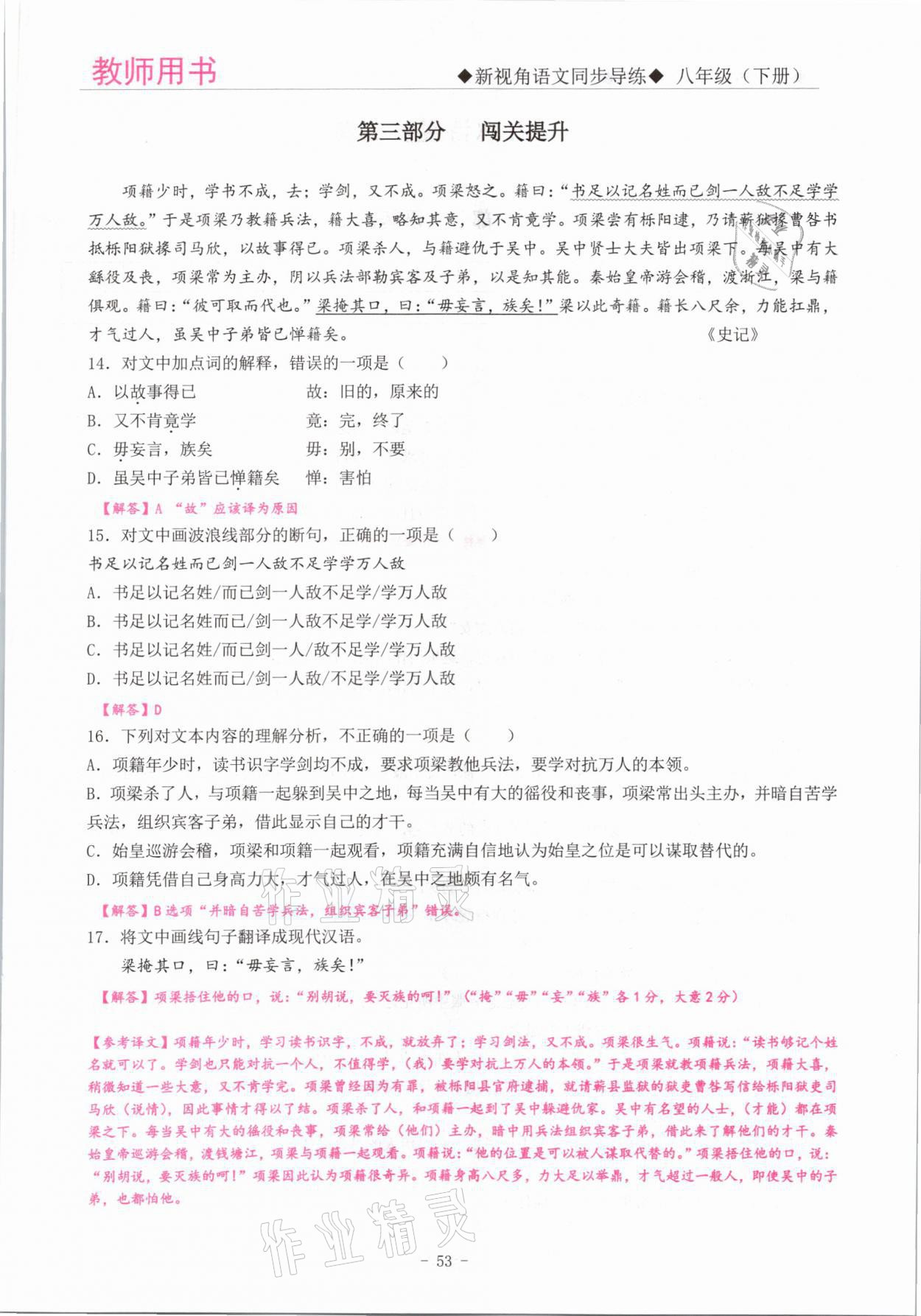 2021年新视角教辅系列丛书八年级语文下册人教版
