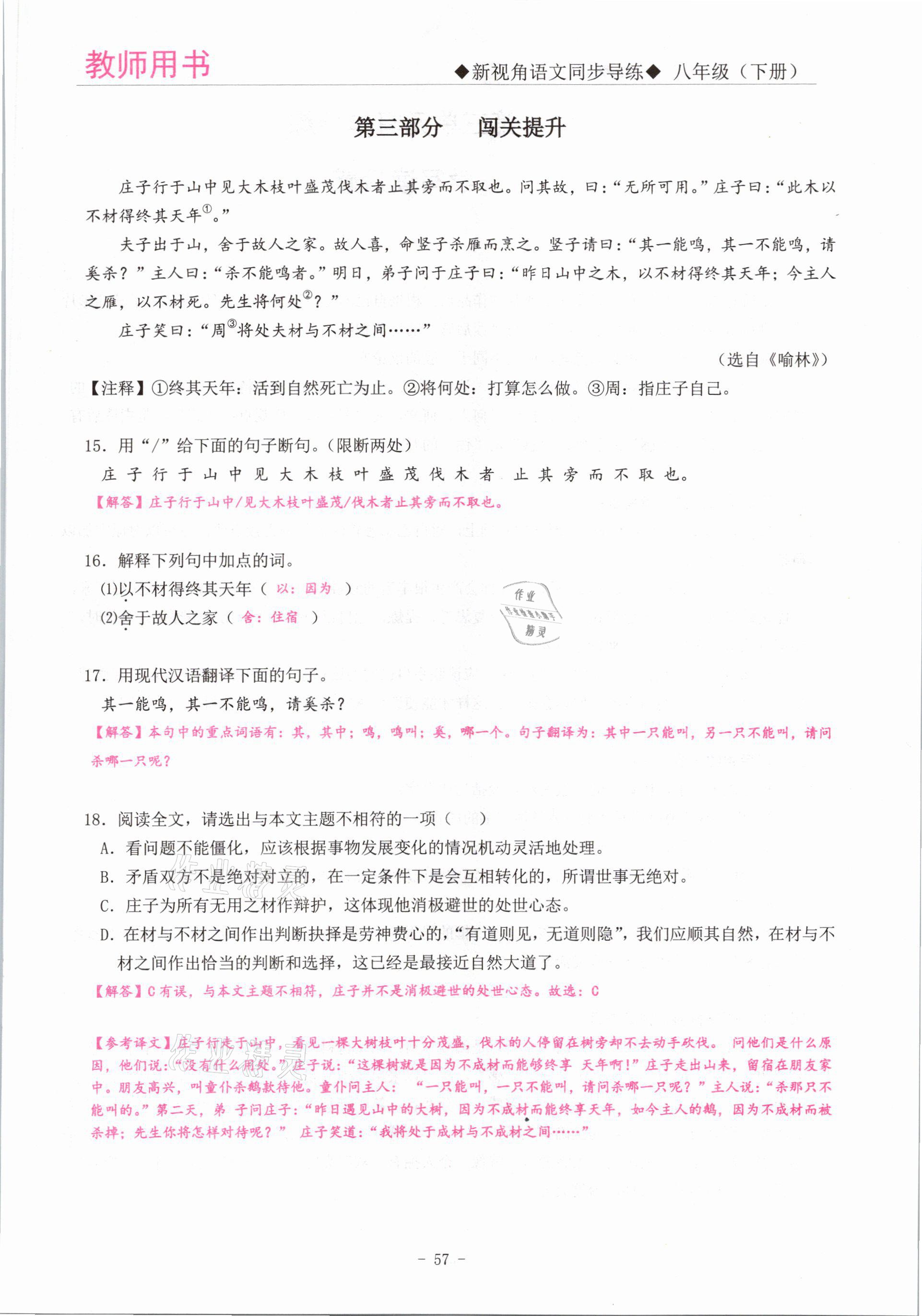 2021年新视角教辅系列丛书八年级语文下册人教版