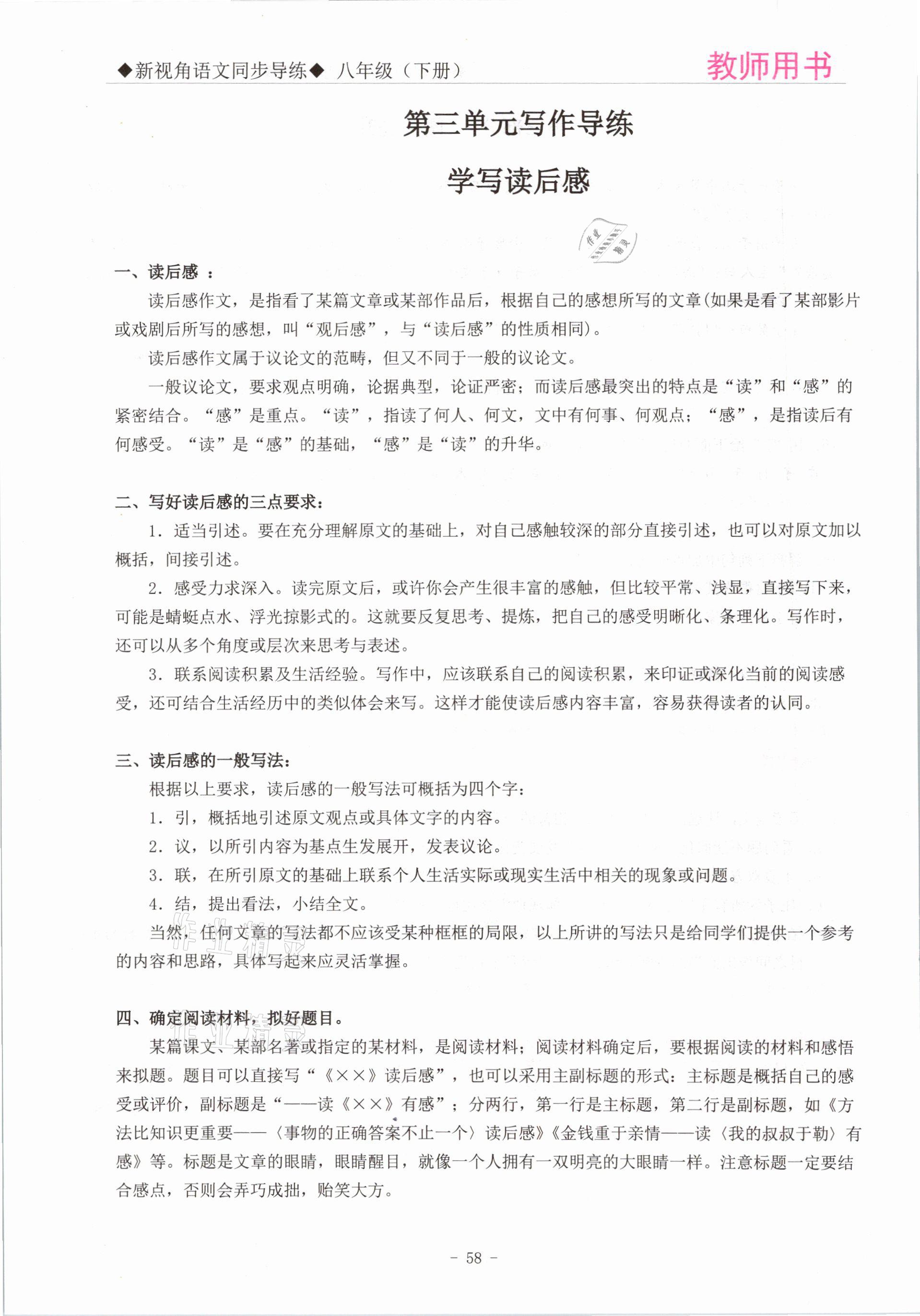 2021年新视角教辅系列丛书八年级语文下册人教版