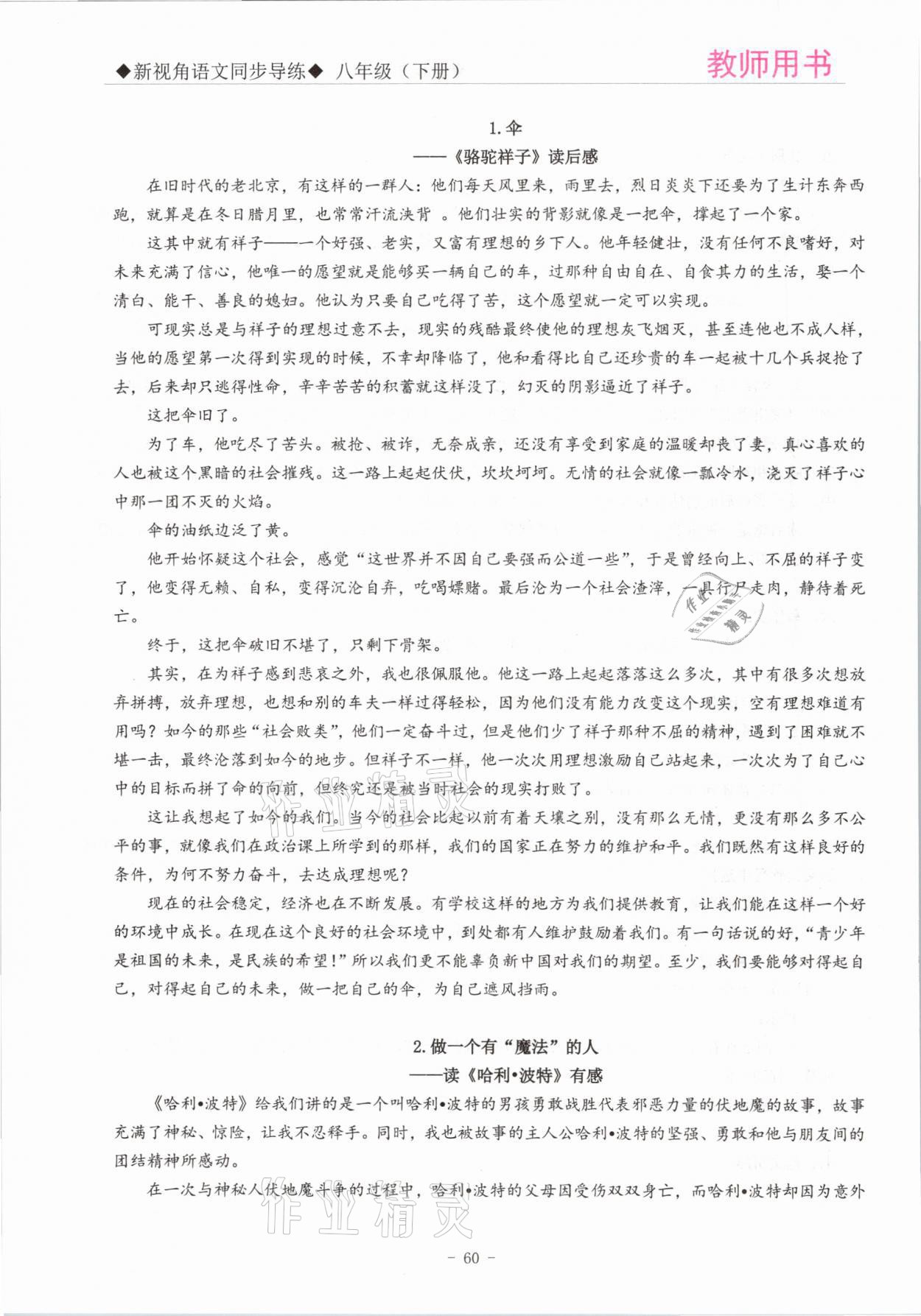 2021年新视角教辅系列丛书八年级语文下册人教版