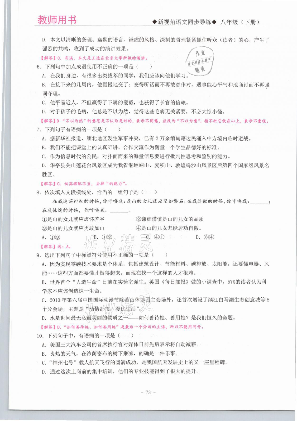 - 参考答案第73页