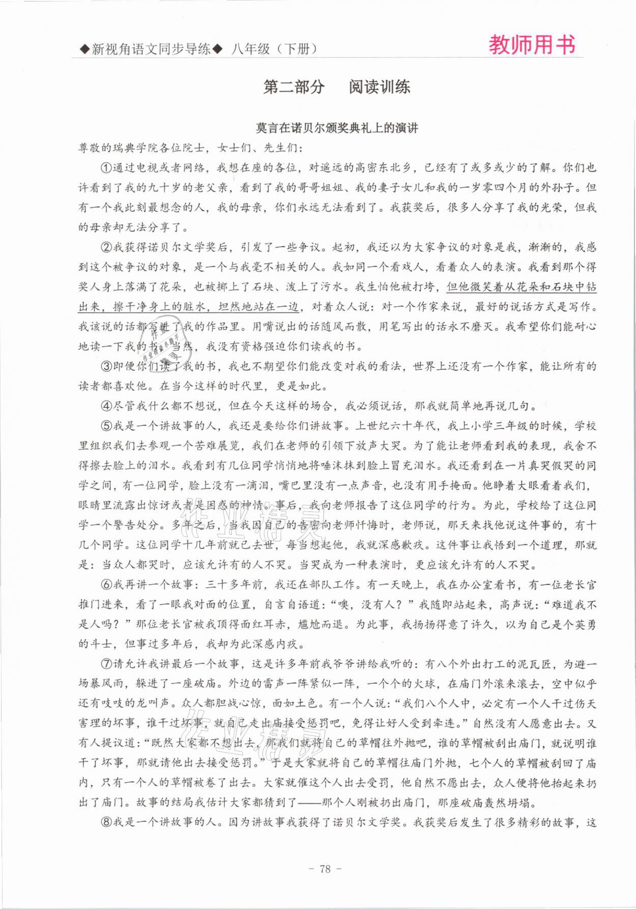 2021年新视角教辅系列丛书八年级语文下册人教版
