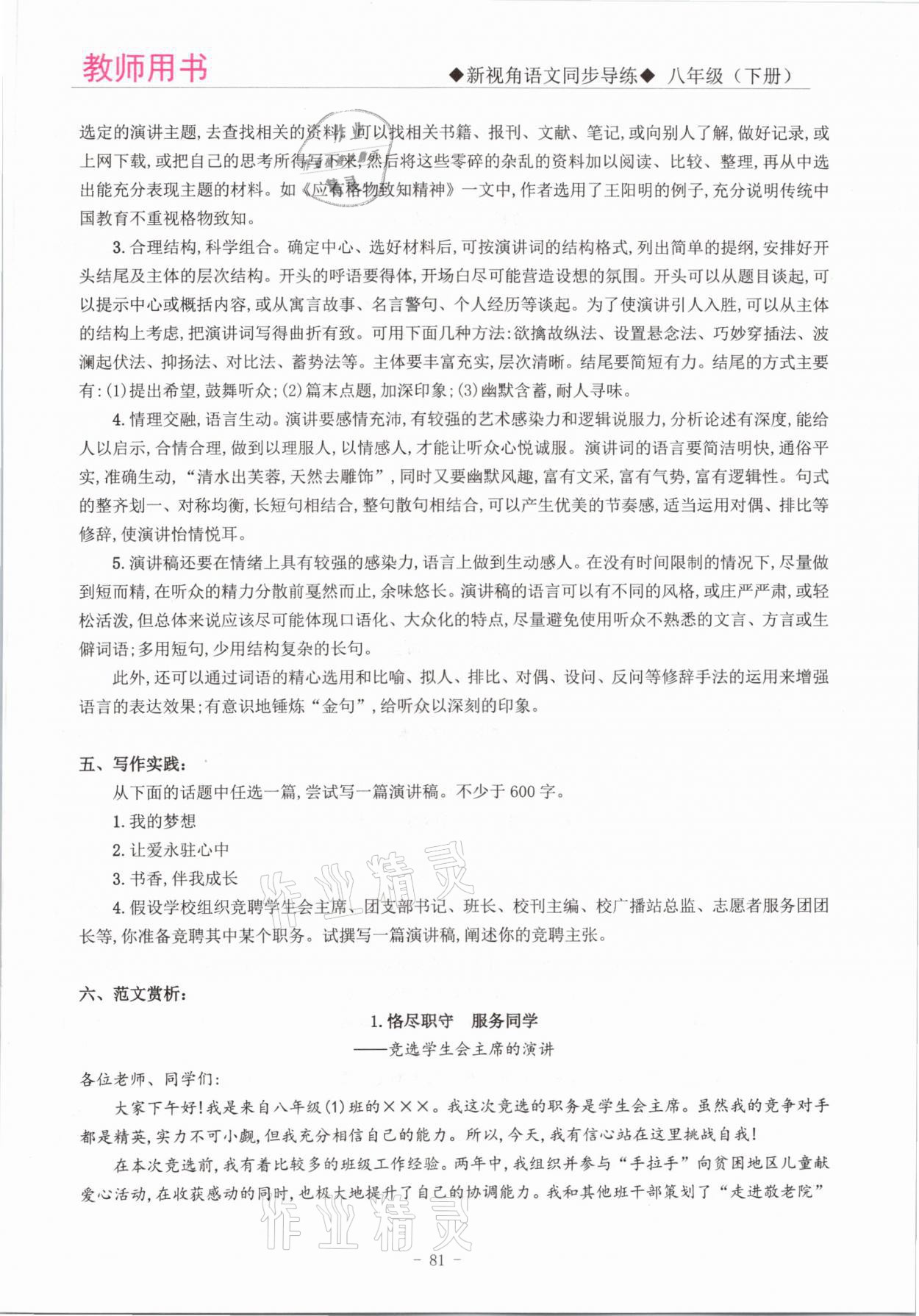 2021年新视角教辅系列丛书八年级语文下册人教版