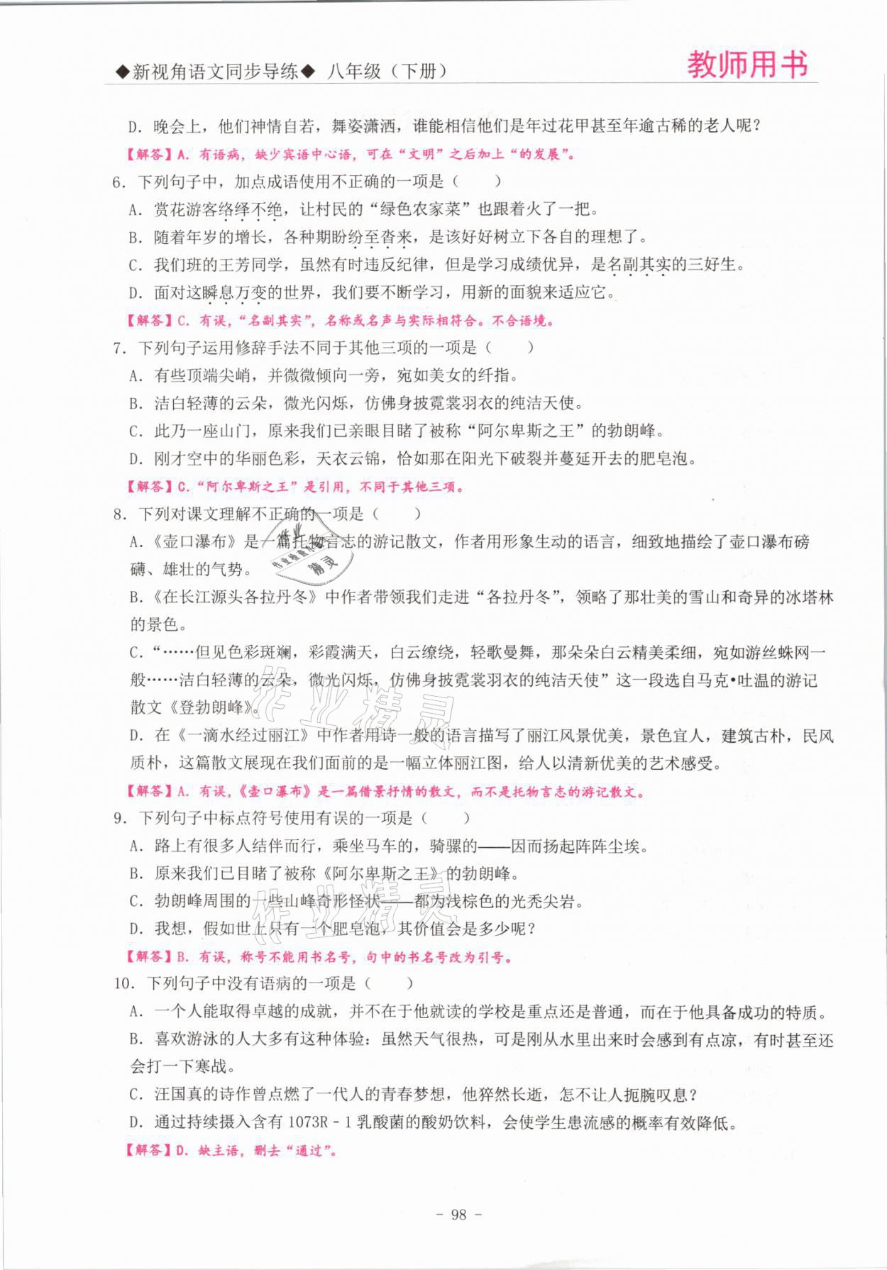 - 参考答案第98页