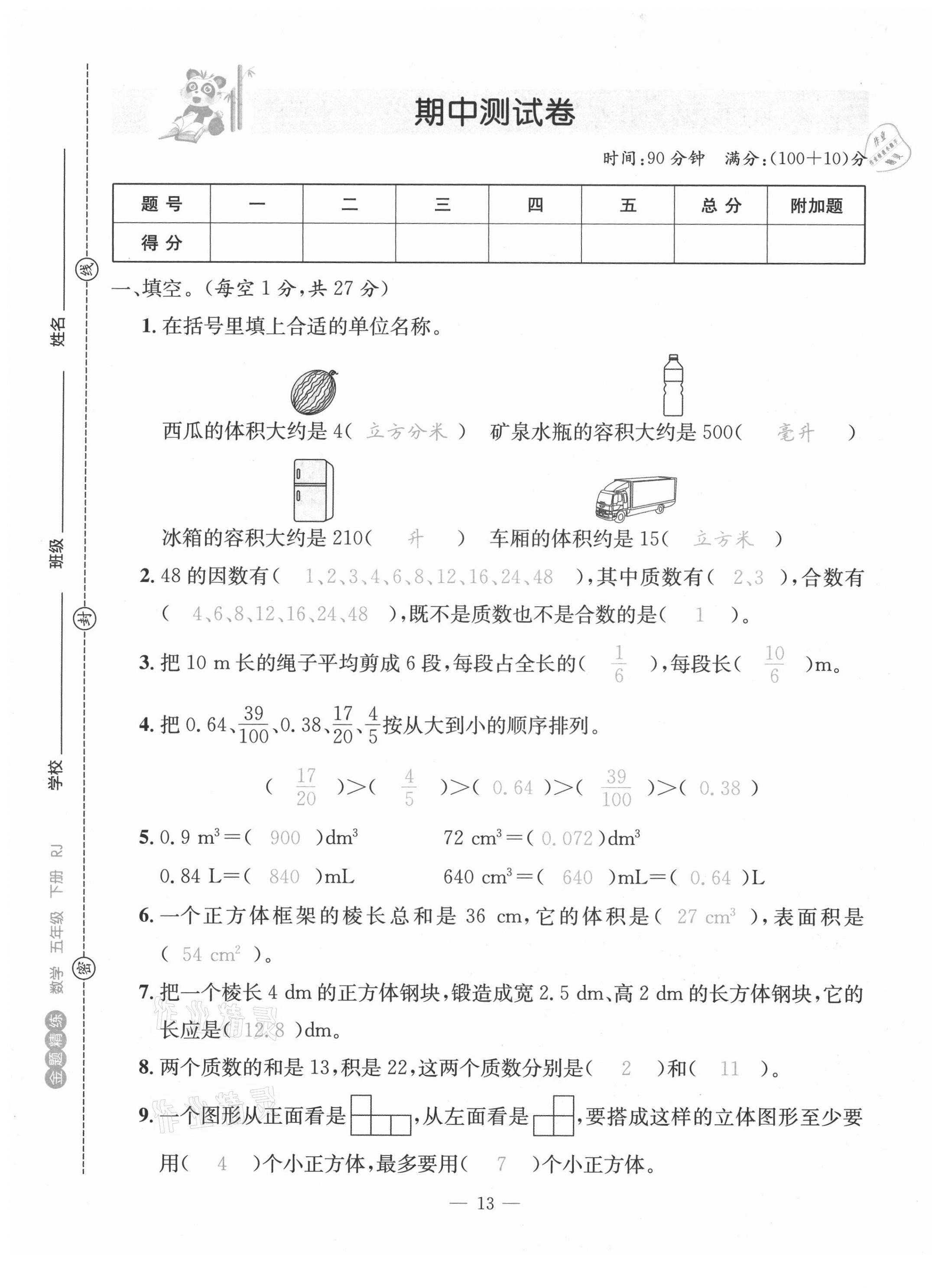 注:目前有些书本章节名称可能整理的还不是很完善,但都是按照顺序排列的,请同学们按照顺序仔细查找。练习册 2021年合力数学金题精练五年级下册人教版 答案主要是用来给同学们做完题方便对答案用的,请勿直接抄袭。