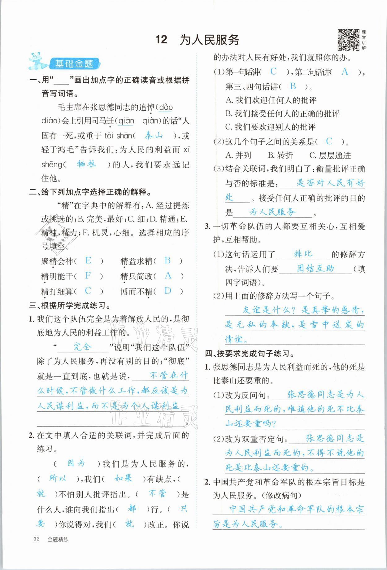注:目前有些书本章节名称可能整理的还不是很完善,但都是按照顺序排列的,请同学们按照顺序仔细查找。练习册 2021年合力语文金题精练六年级下册人教版 答案主要是用来给同学们做完题方便对答案用的,请勿直接抄袭。
